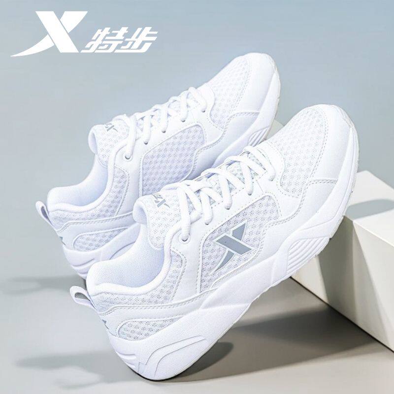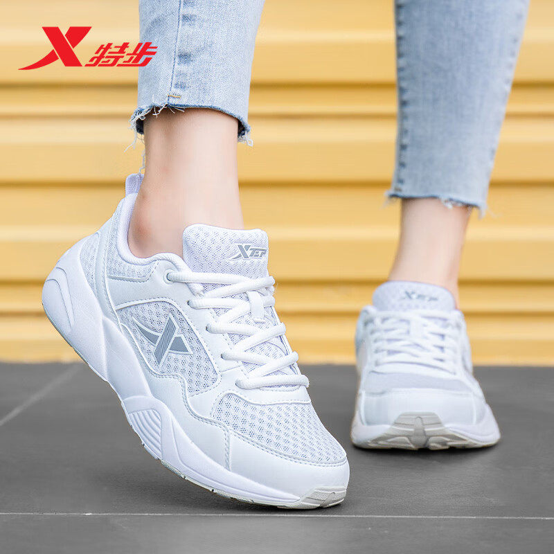 特步女鞋小白鞋春季轻便休闲跑步鞋正品网鞋网面透气官方运动鞋女