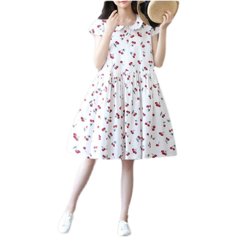 女大童夏装连衣裙胖女孩宽松加肥加大码12-15岁初中生碎花裙子潮