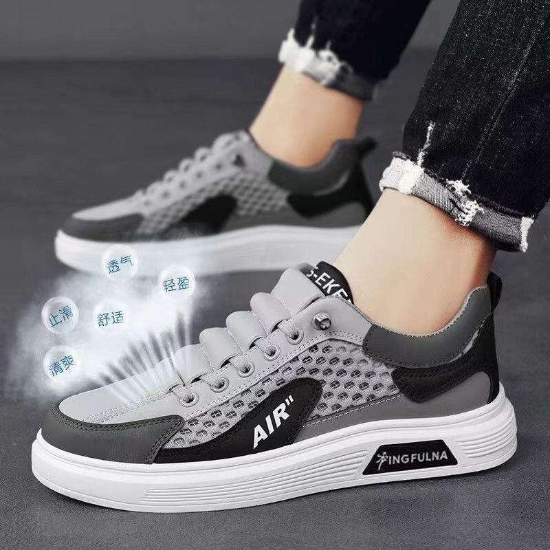 板鞋男春季2026新款网面镂空透气休闲网鞋青少年百搭男鞋白色防臭