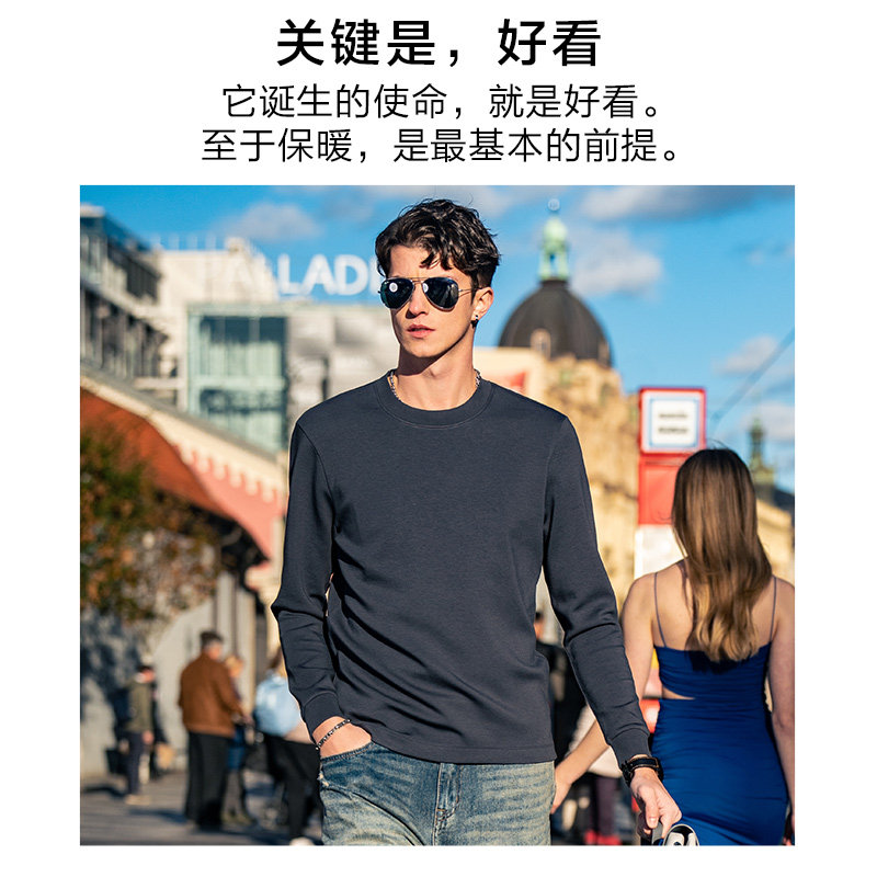 MrBu布先生热胆圆领纯色长袖加厚打底T恤男款休闲百搭春秋KT01986