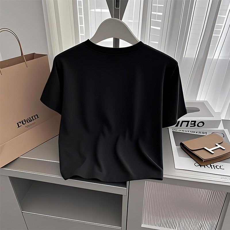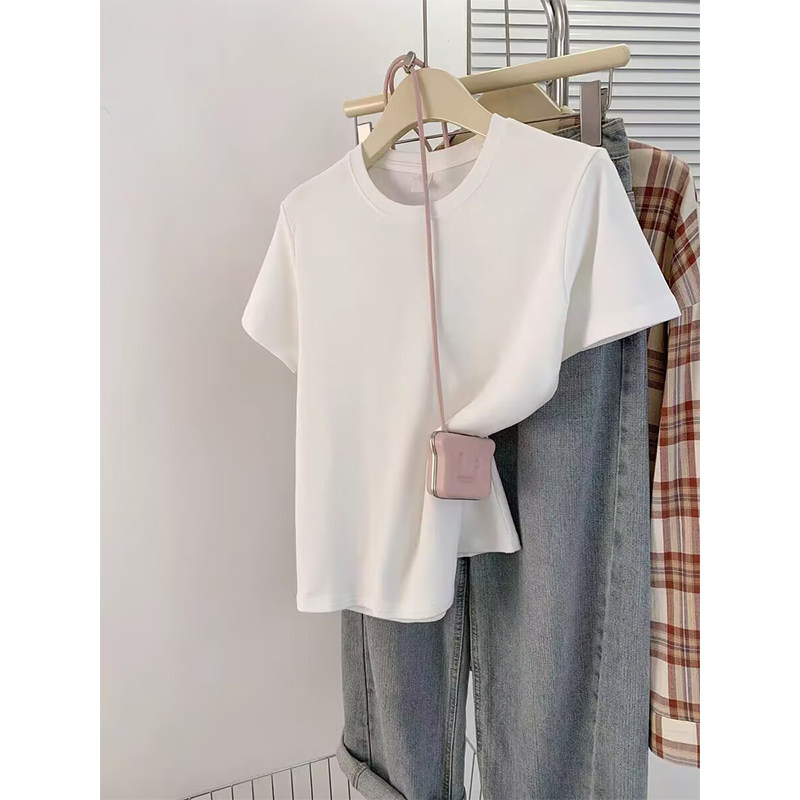 2026新款今年流行爆款春夏短袖简约正肩基础款棉质t恤女修身上衣