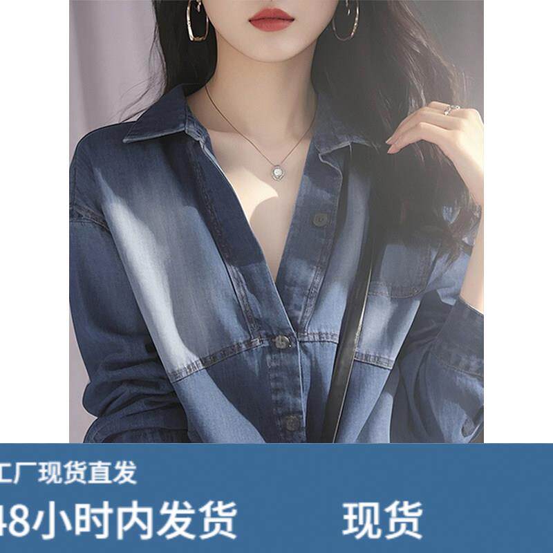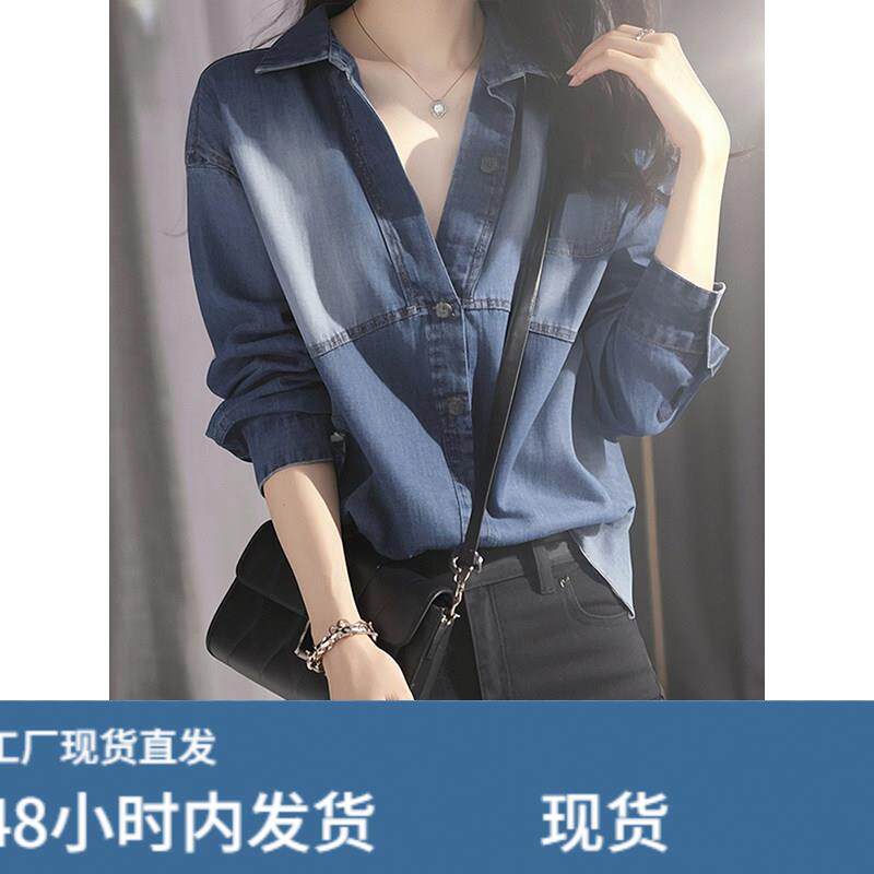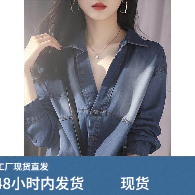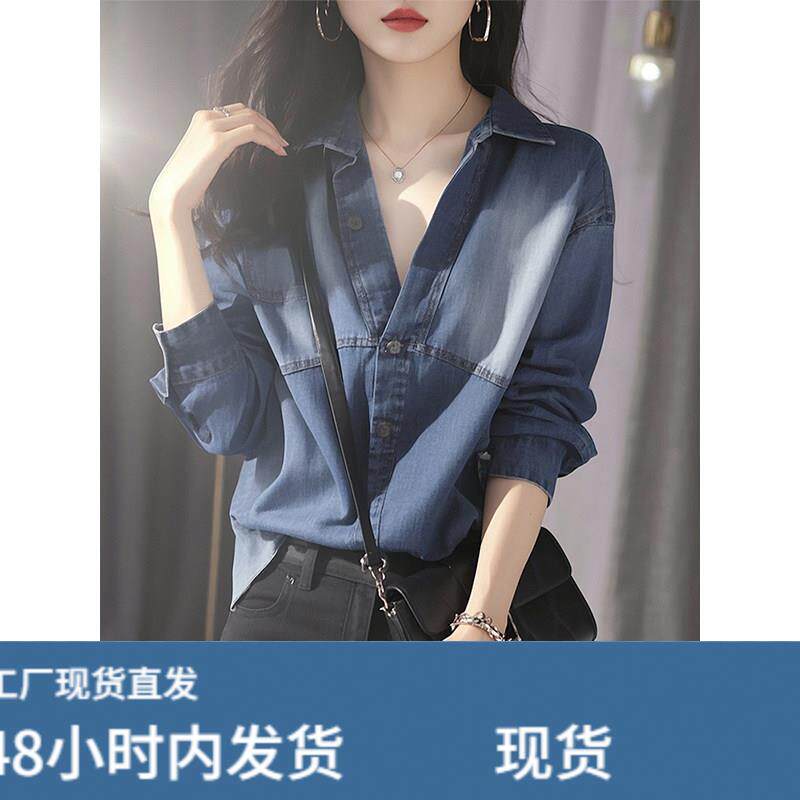 蓝色牛仔衬衫春装女款2025年新款轻奢高级感爆款宽松外套长袖上衣