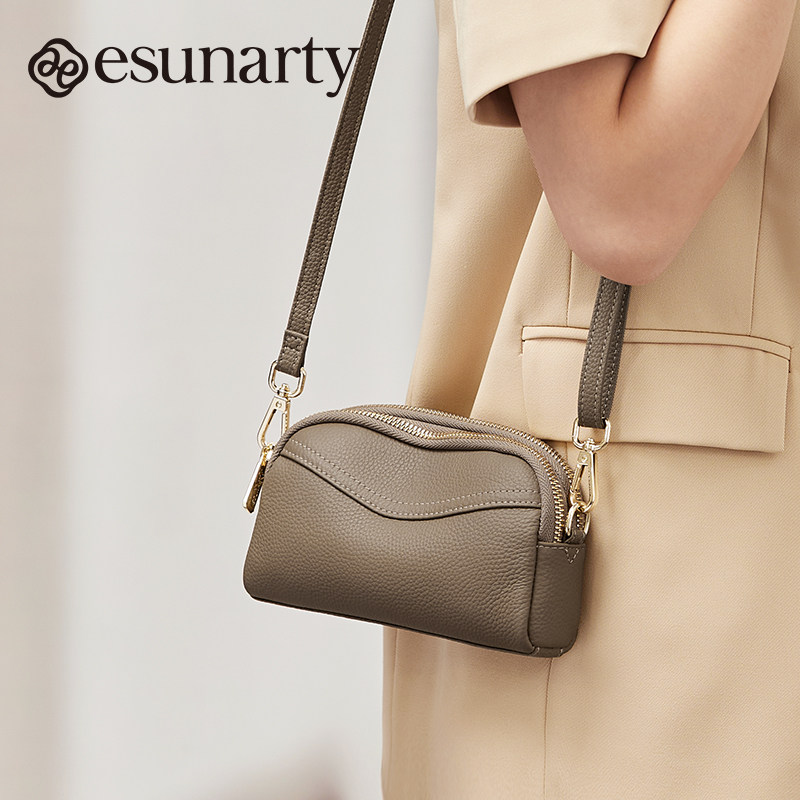 真皮多层手机包女2026新款头层牛皮手拿包妈妈款轻便单肩包斜挎包