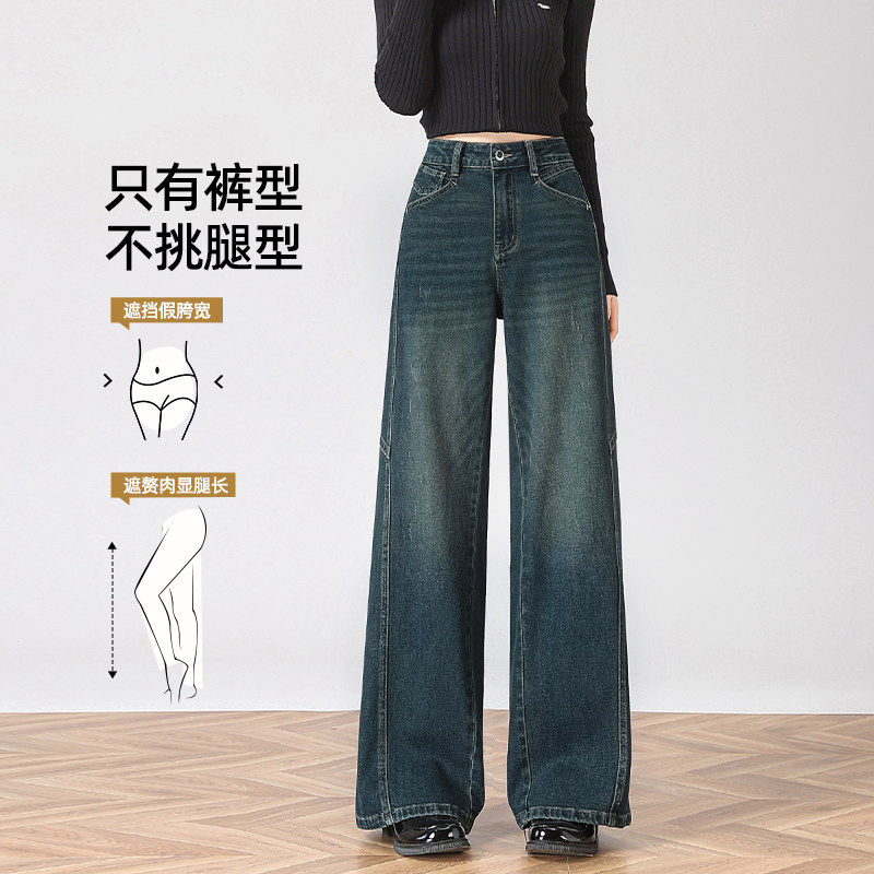 311线报网描述:加绒牛仔裤 遮胯宽 小个子 牛仔裤阔腿宽松
