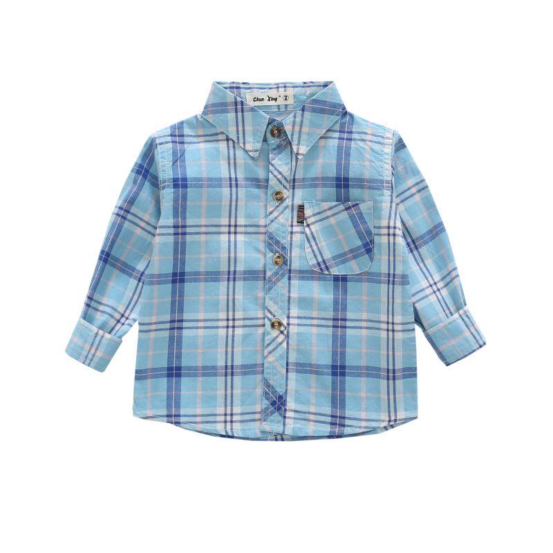 202春夏薄款全棉儿童长袖衬衫薄童装上衣宝宝外套男女童格子衬衣
