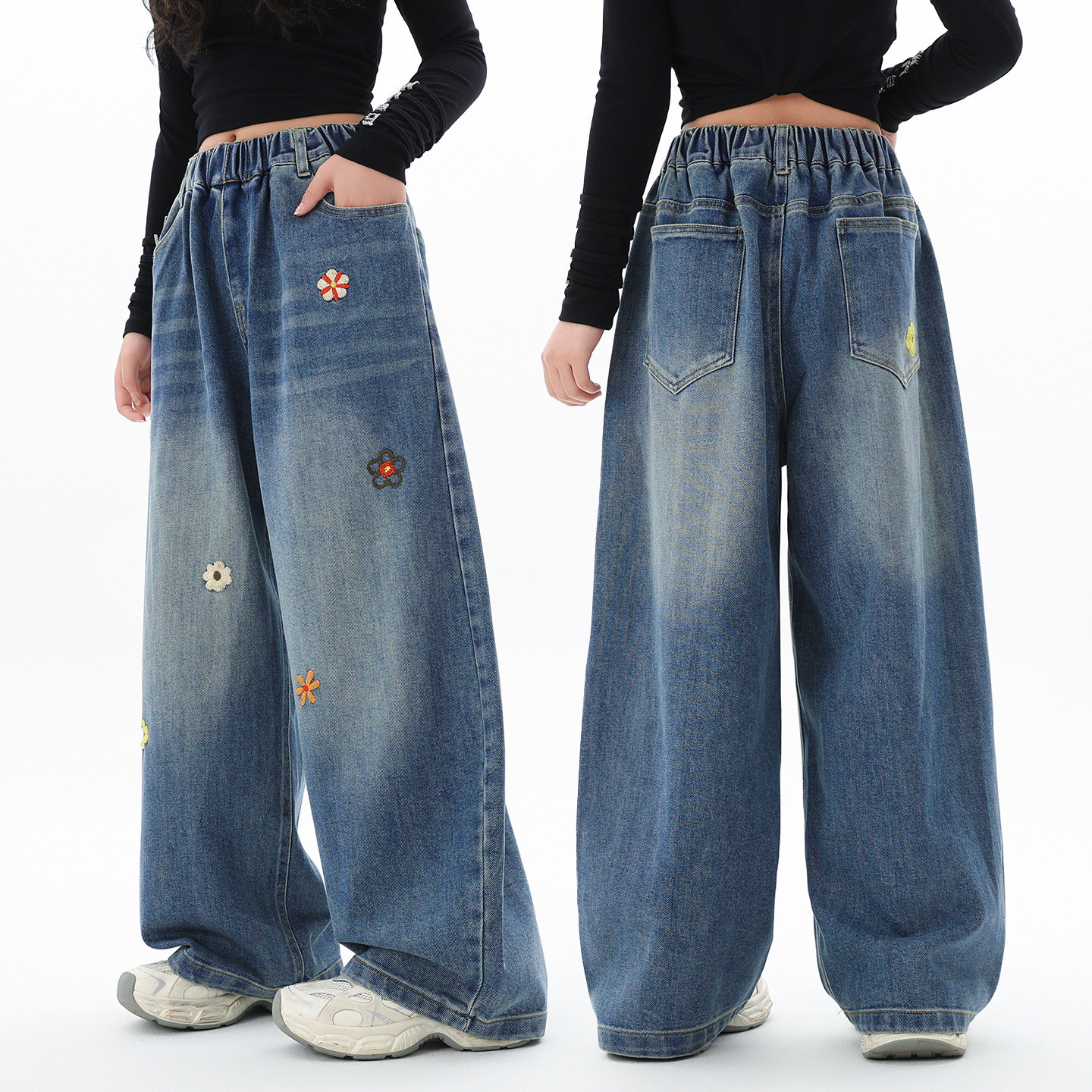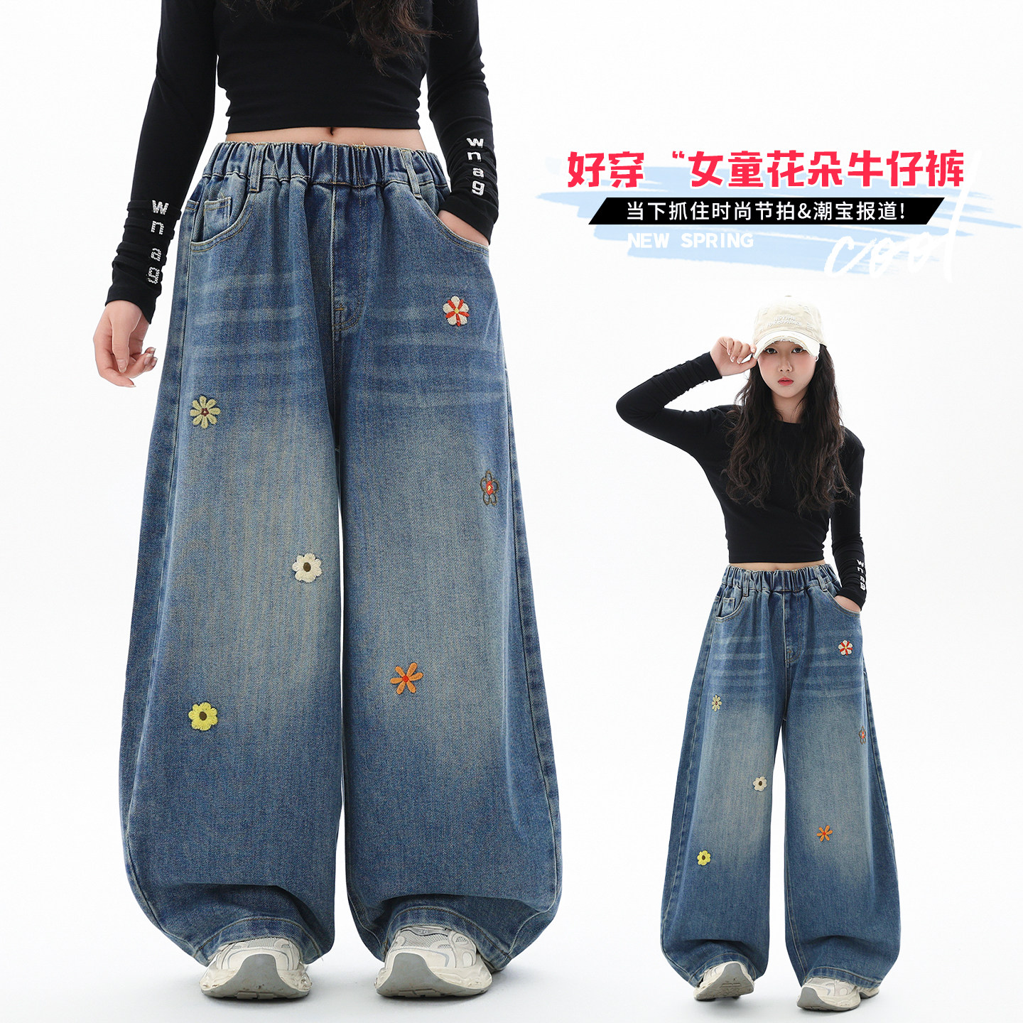 胖女童牛仔裤春秋2026新款女大童12-15岁加肥大码儿童直筒阔腿裤8