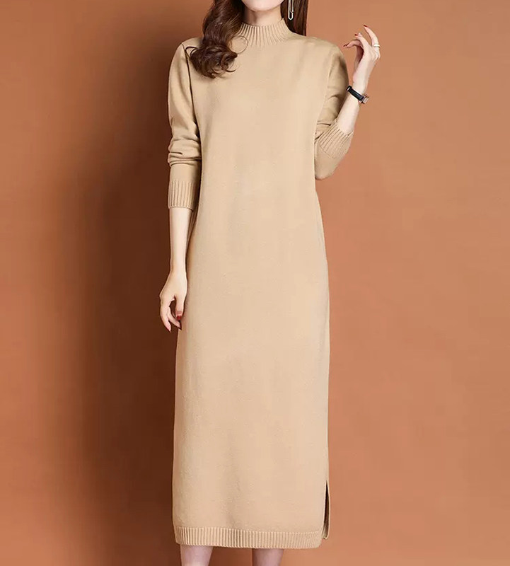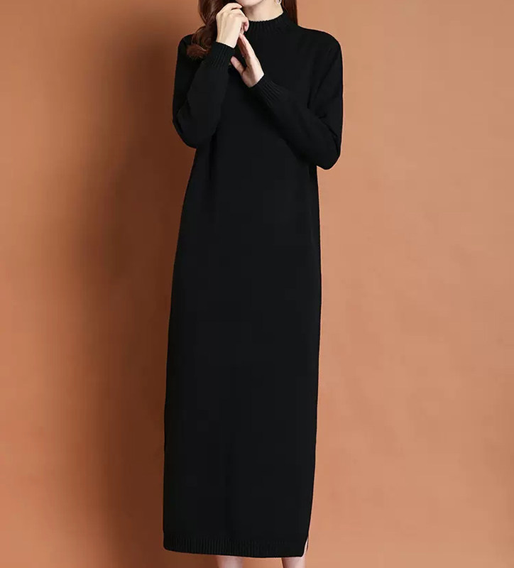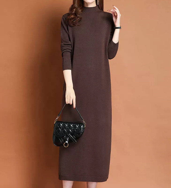 女士长款毛衣秋冬新款配大衣针织羊毛衫加肥大码连衣裙过膝打底衫