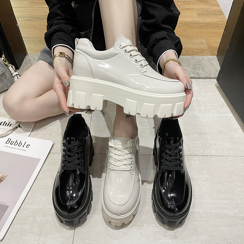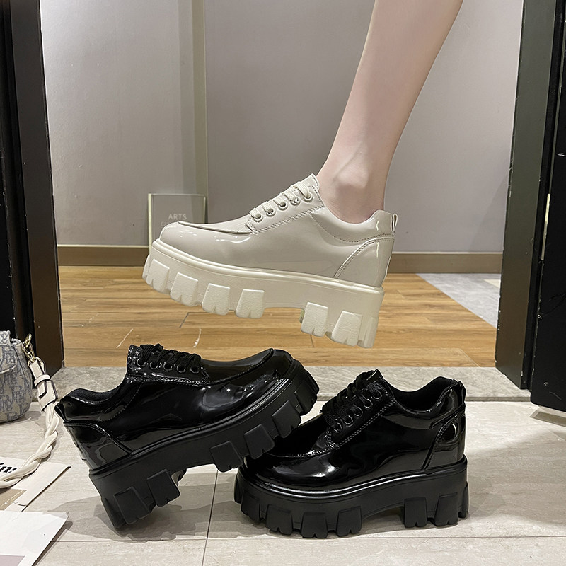 小个子内增高女鞋8cm增高2021春秋新款松O糕厚底老爹鞋亮漆皮单鞋