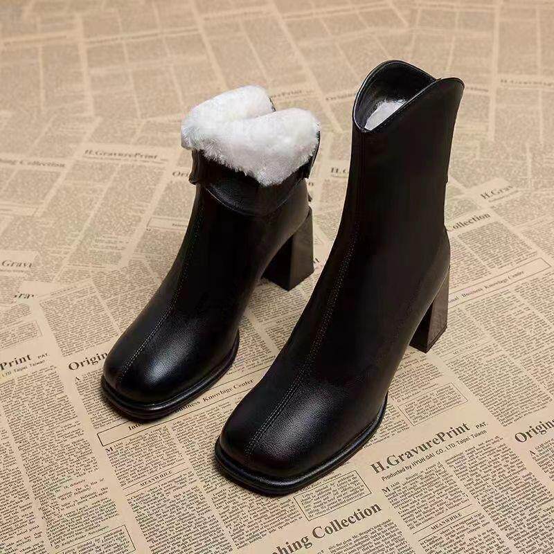 推荐加绒加厚雪地靴冬季女款棉鞋2024新款白色爆款短靴保暖高跟靴