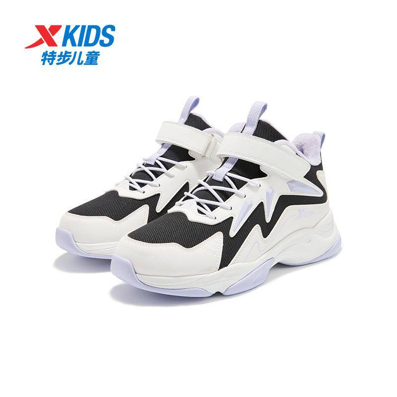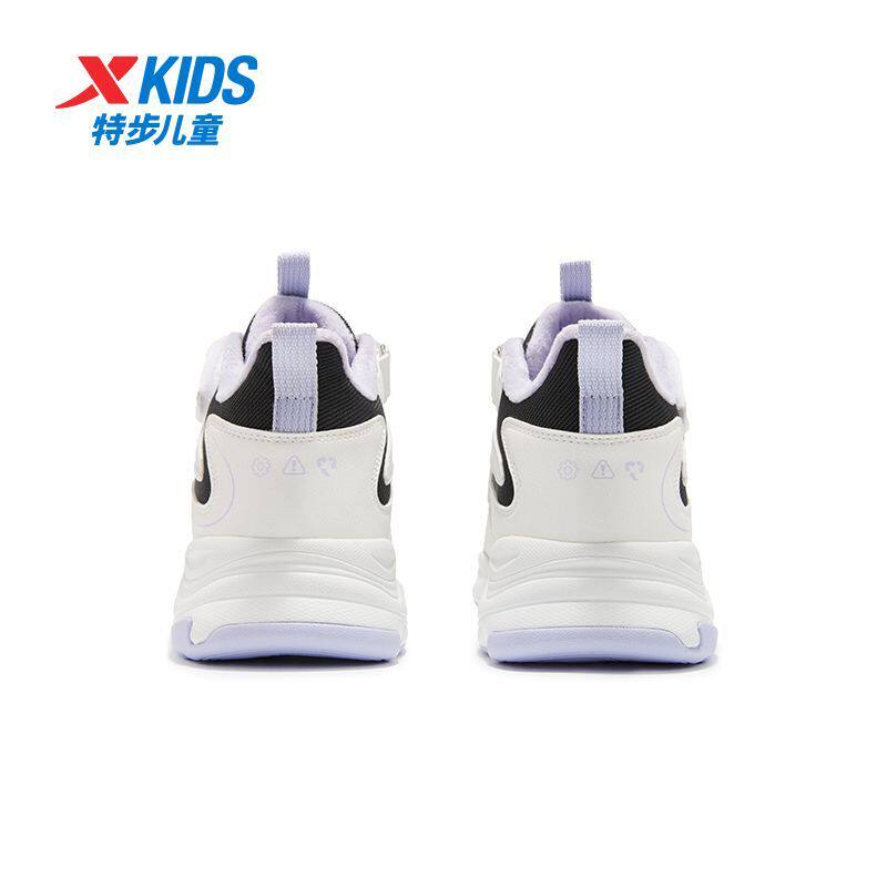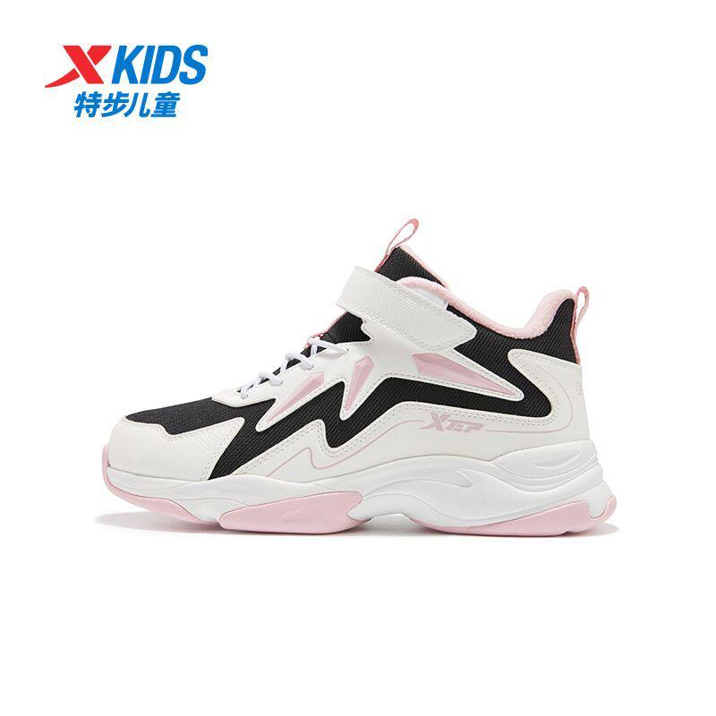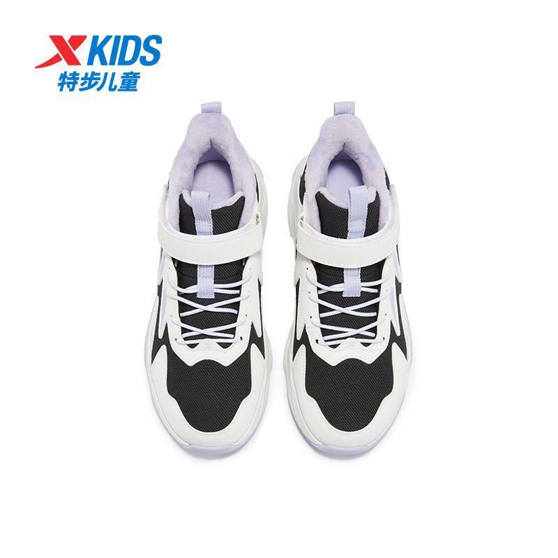 特步儿童秋冬季加绒棉鞋魔术贴女童中大童户外休闲运动防滑缓震