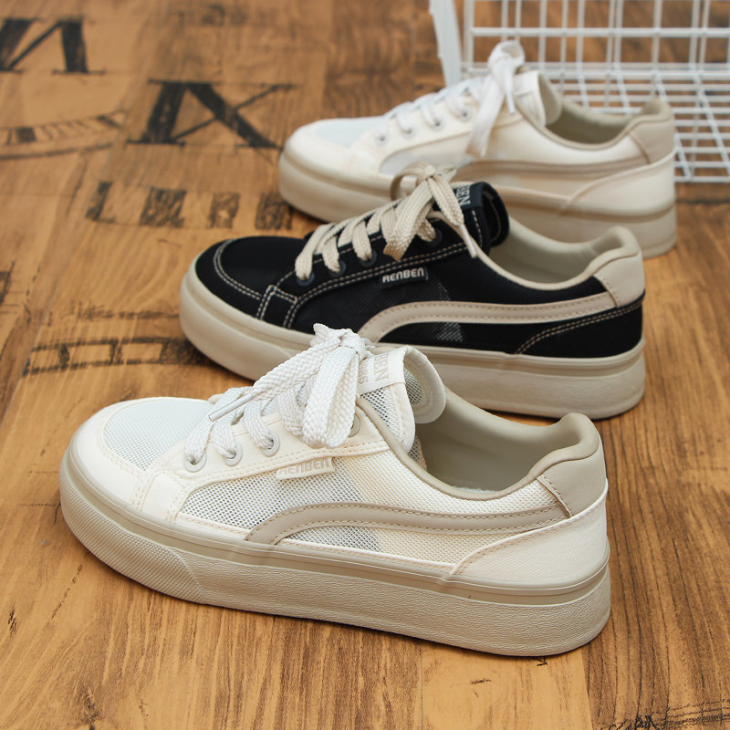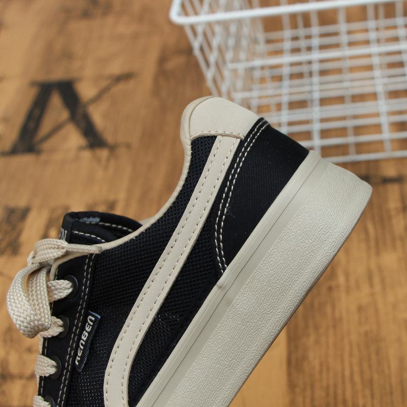 人本网面帆布鞋女2026夏季新款透气黑色休闲板鞋女士薄款运动鞋子