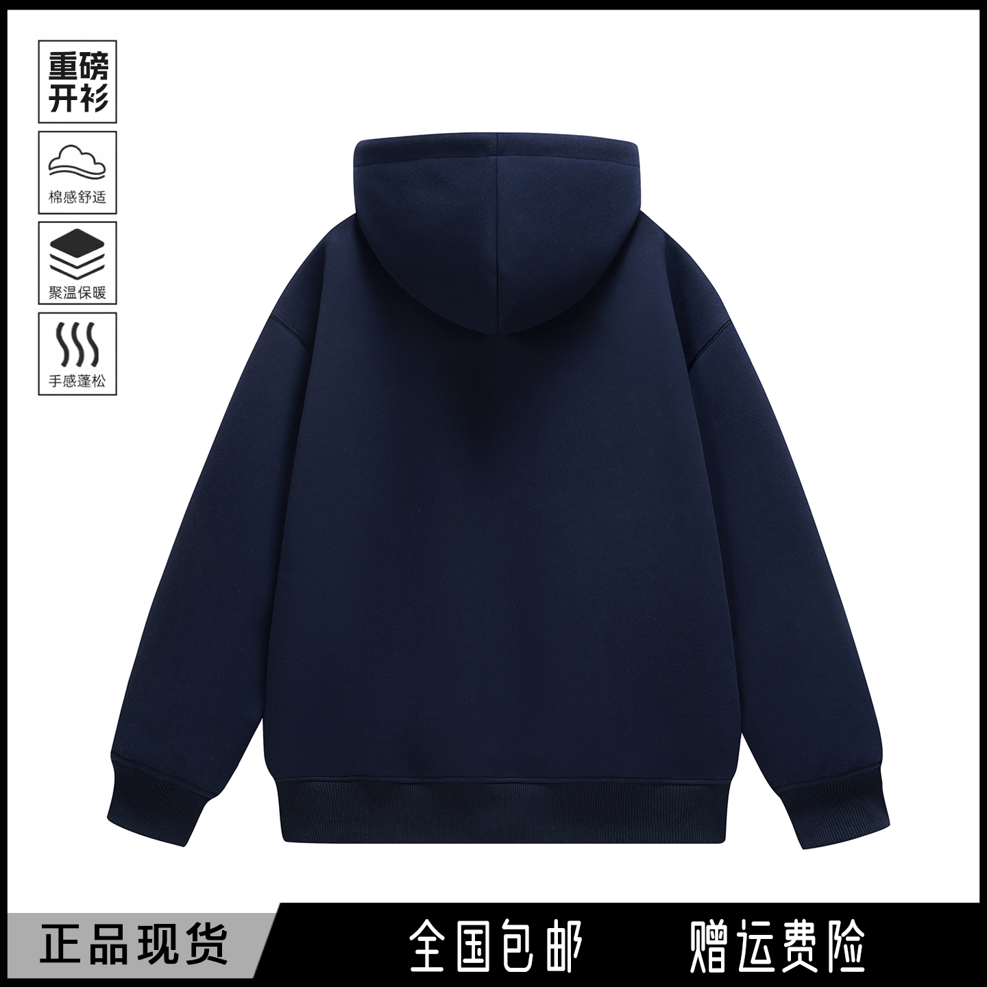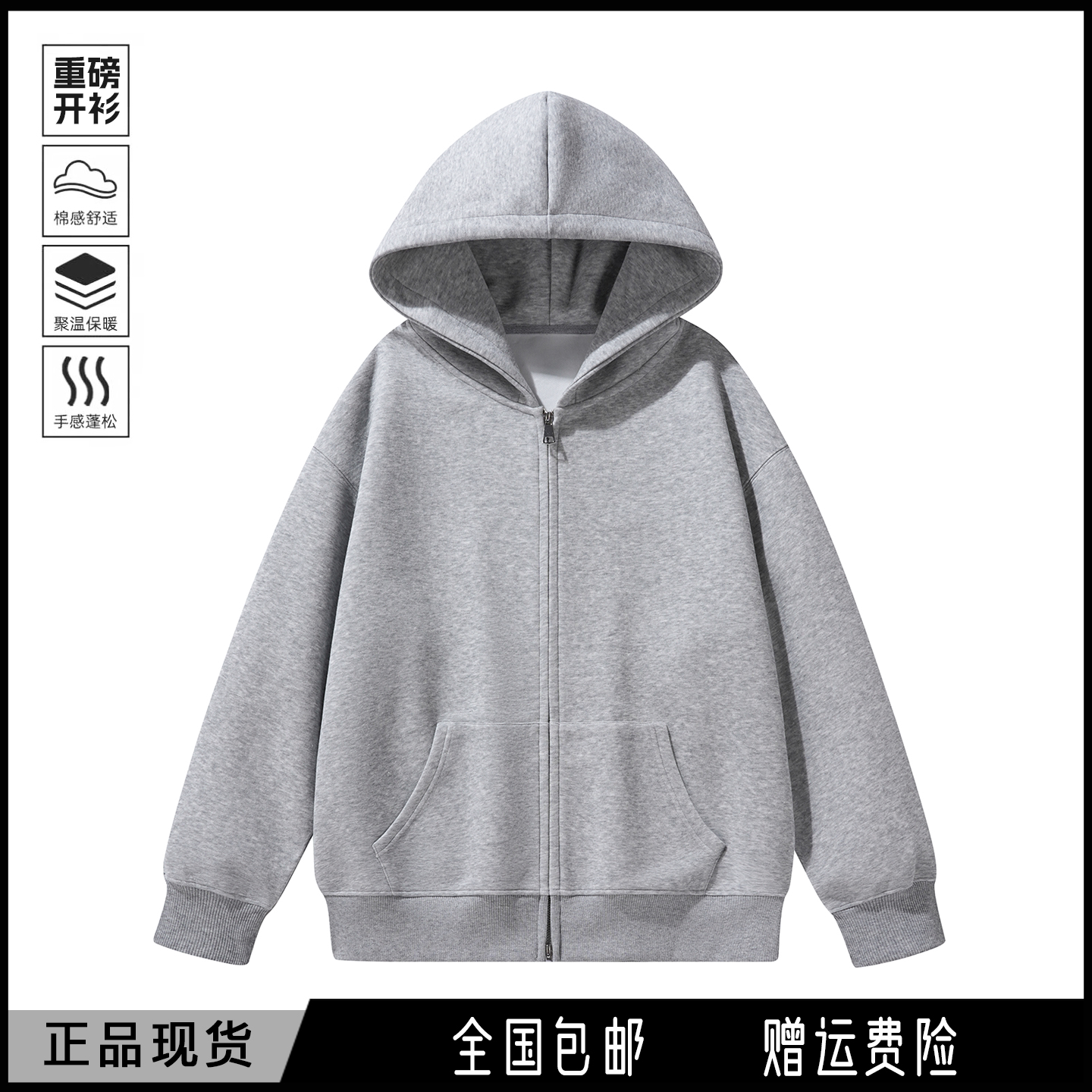 春秋加绒加厚500g克重磅连帽卫衣开衫外套男女春秋季上衣情侣装