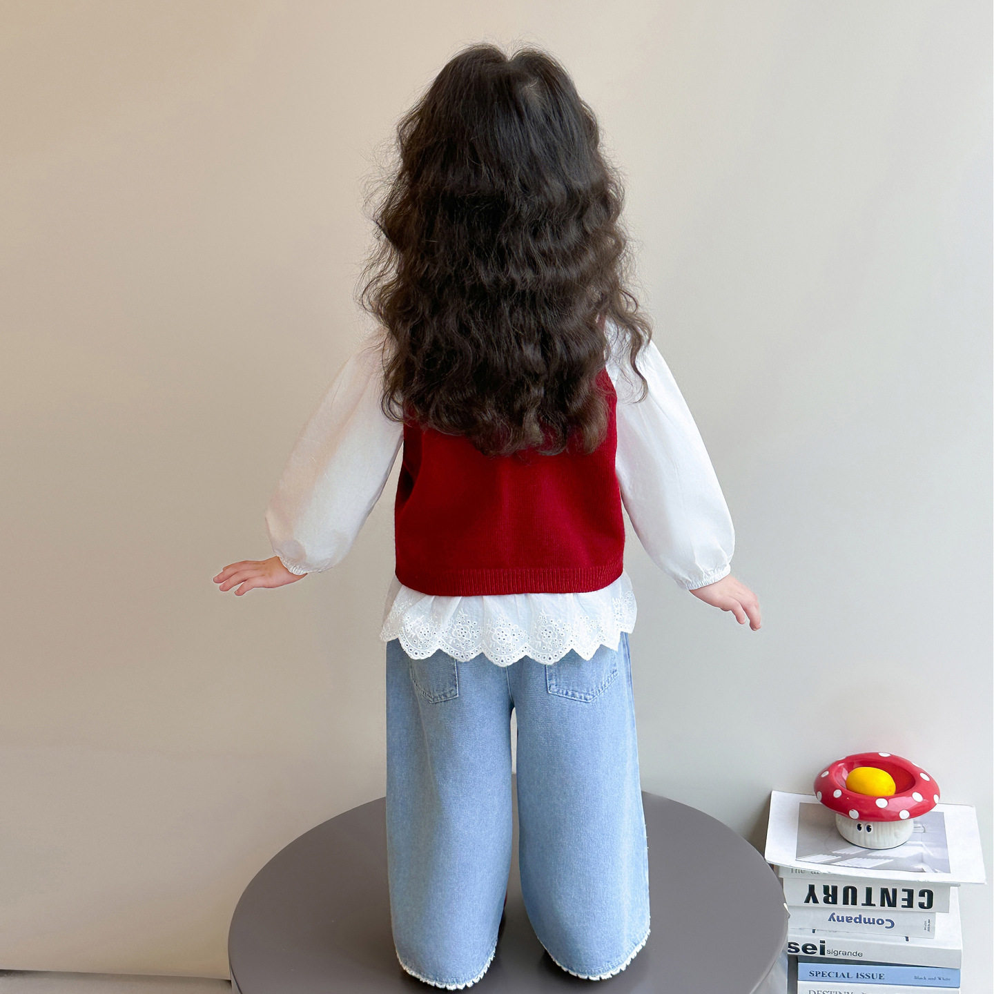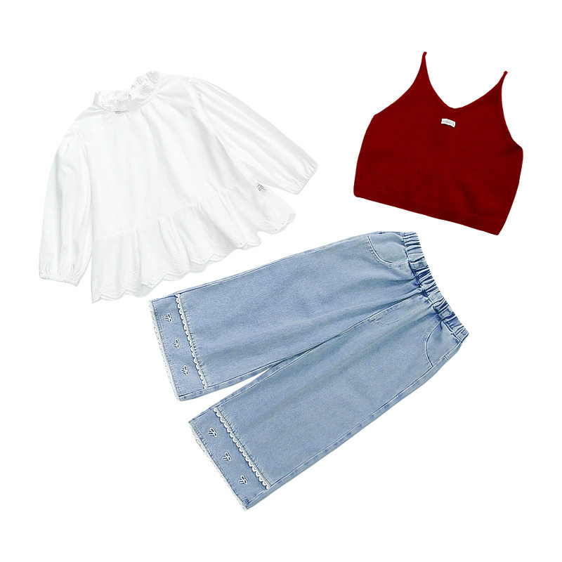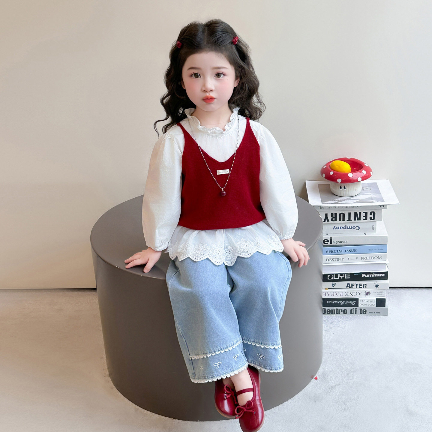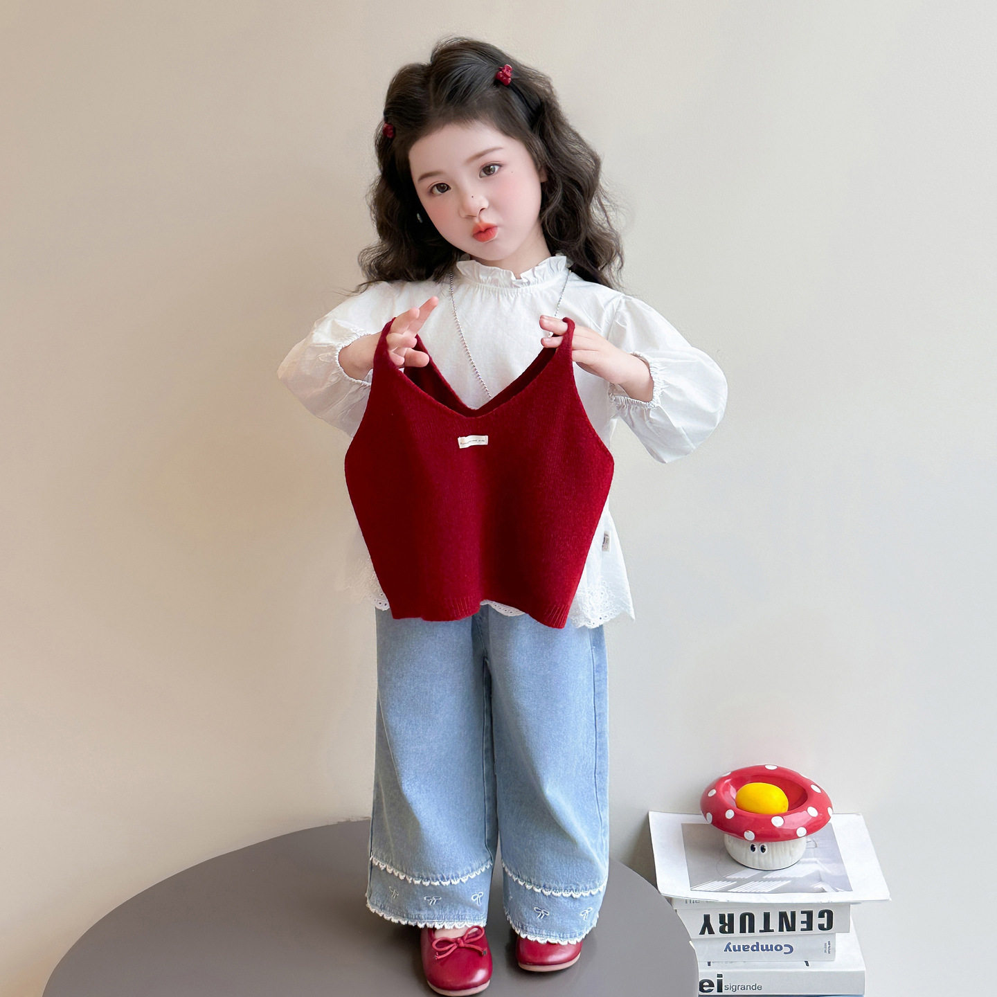 女童春季套装2026新款春装洋气时髦儿童红色春秋吊带女宝宝三件套