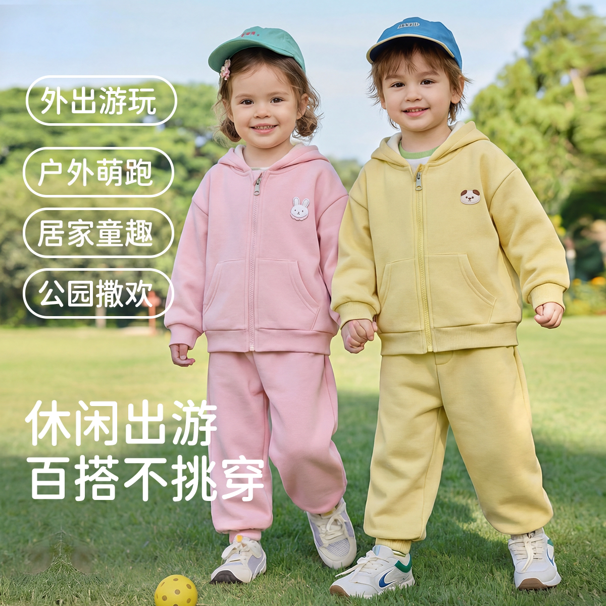 婧麒儿童卫衣套装男童春季衣服女童春秋运动童装宝宝洋气加绒衣服
