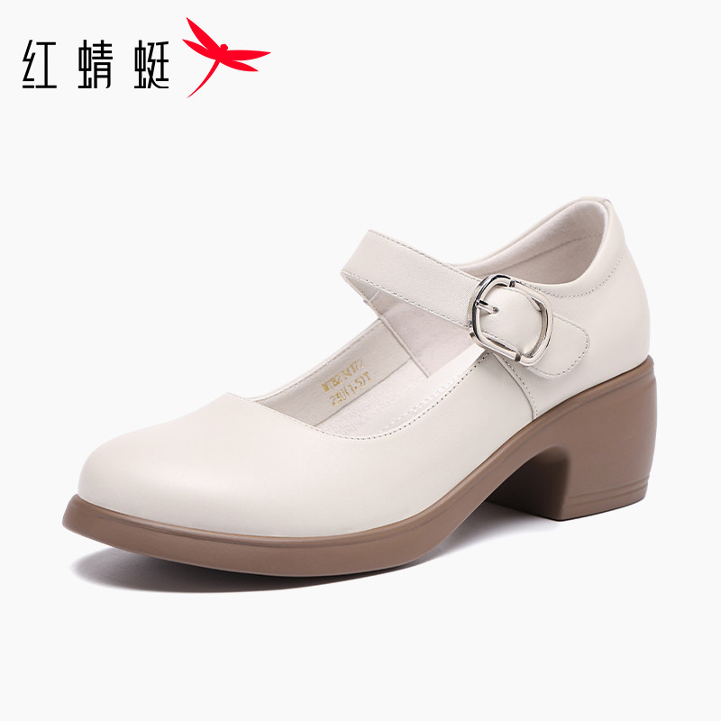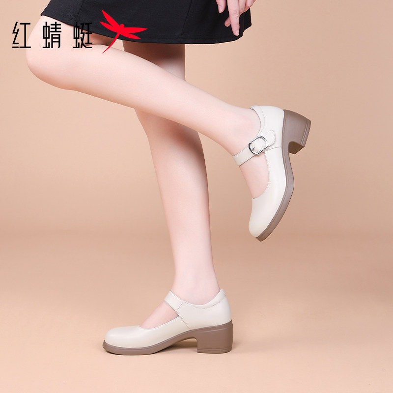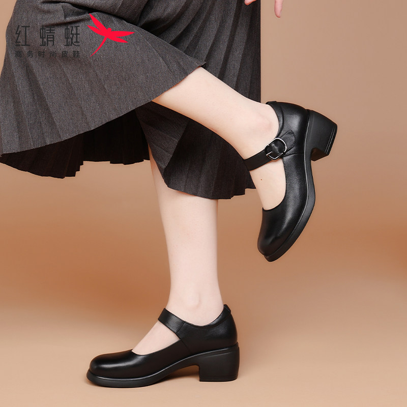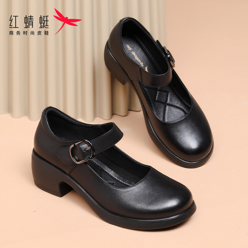311线报网描述:红蜻蜓皮鞋单鞋女真皮高跟鞋粗跟低跟秋季