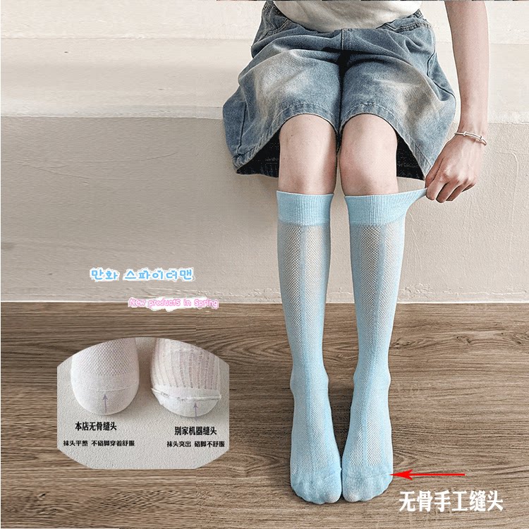 儿童长筒袜子夏季薄款纯棉男女童透气运动袜小学生网眼高筒足球袜
