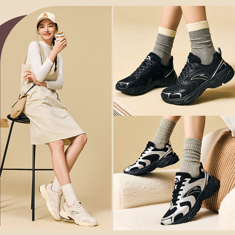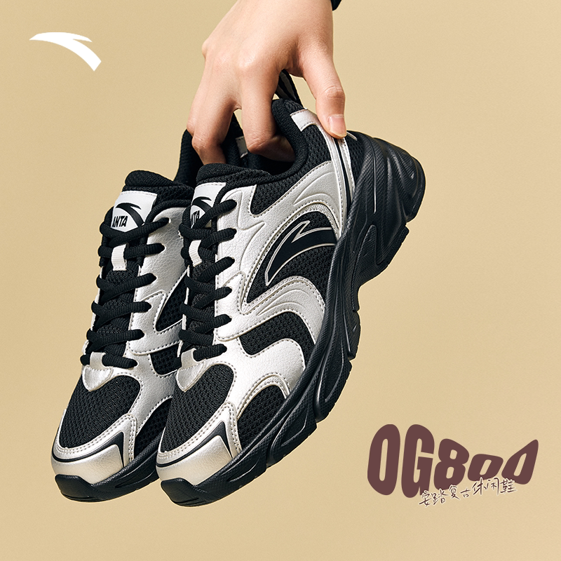 安踏OG800复古黑色休闲鞋女2026春季网面透气机能风潮流运动鞋子