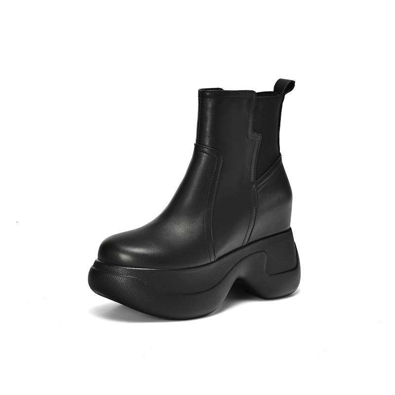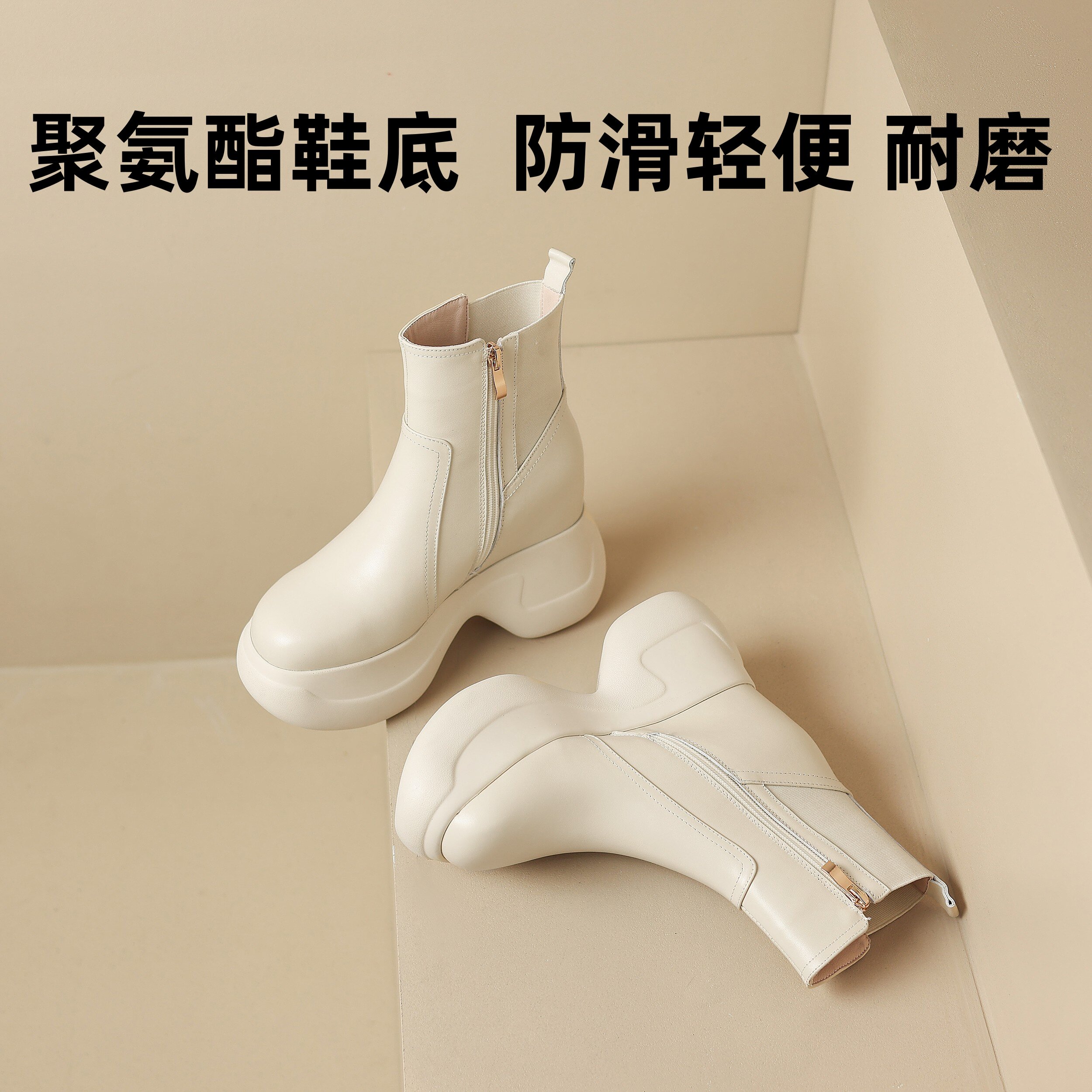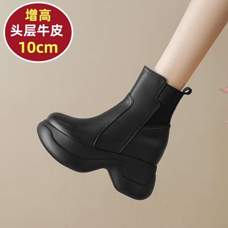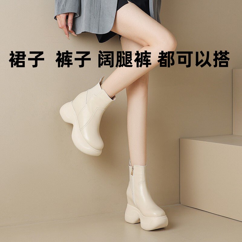 白色小短靴女2025秋冬单鞋真皮时尚厚底马丁靴10cm高跟鞋加绒靴子