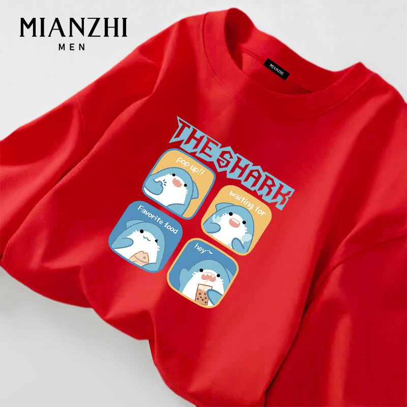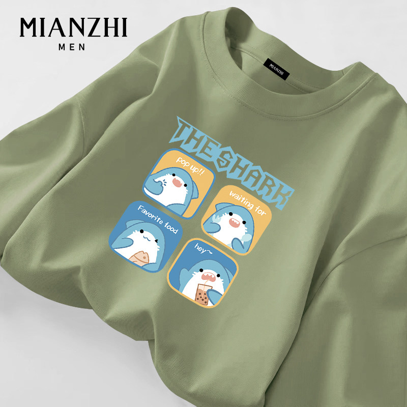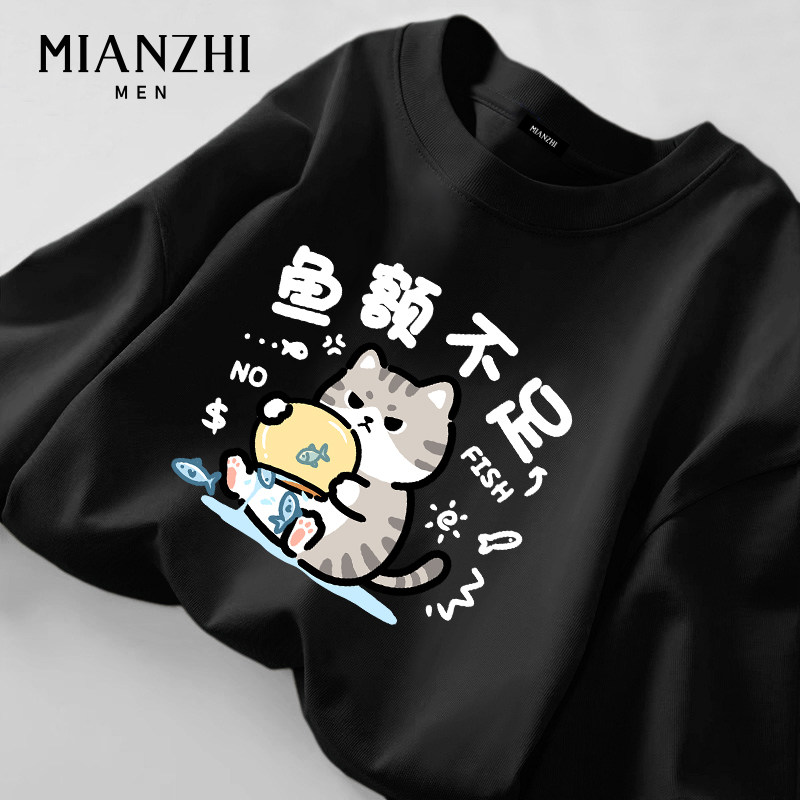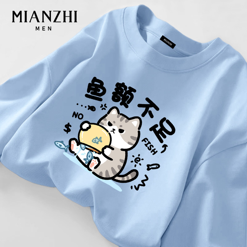 棉致趣味小猫卡通纯棉长袖男款t恤秋季宽松青少年新款大码上衣服