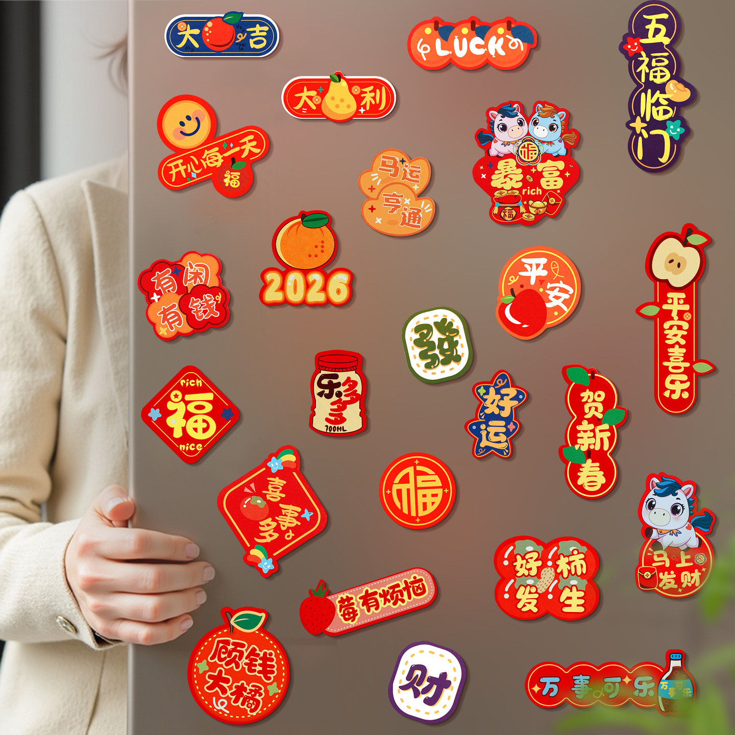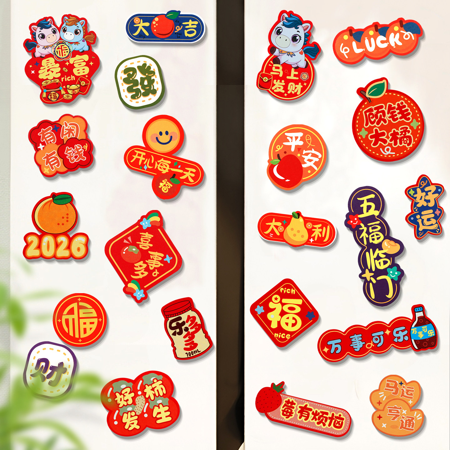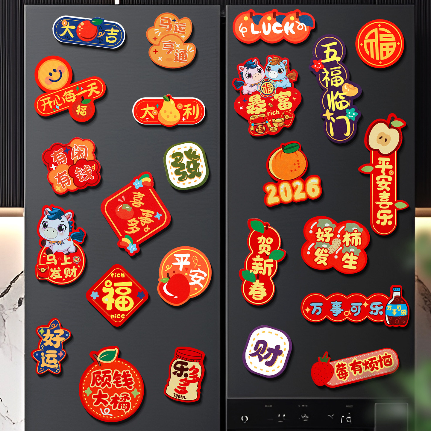 马年2026新款磁吸冰箱贴新年装饰过年创意可爱对联福字春节装饰