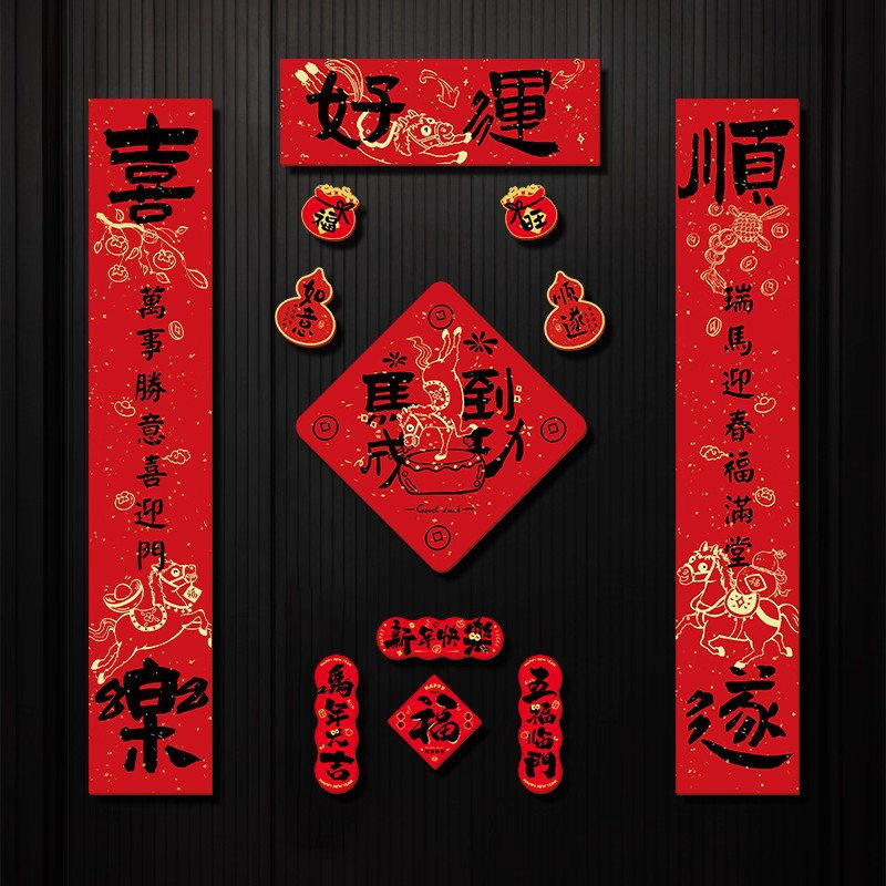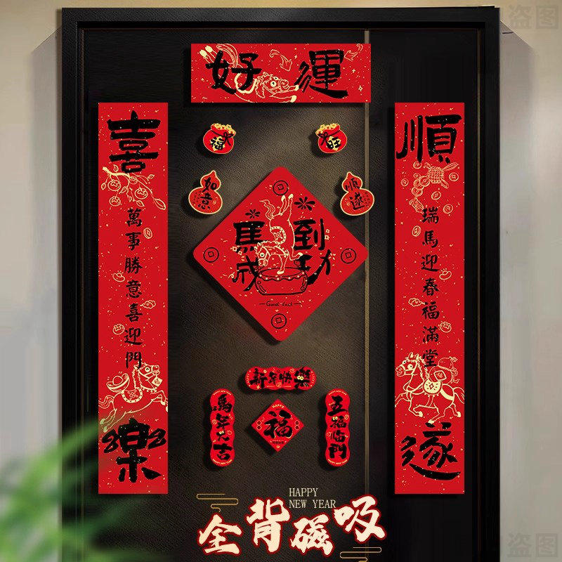 【2026年马年】对联春联新款新年全磁吸门贴春节过年创意门联福字
