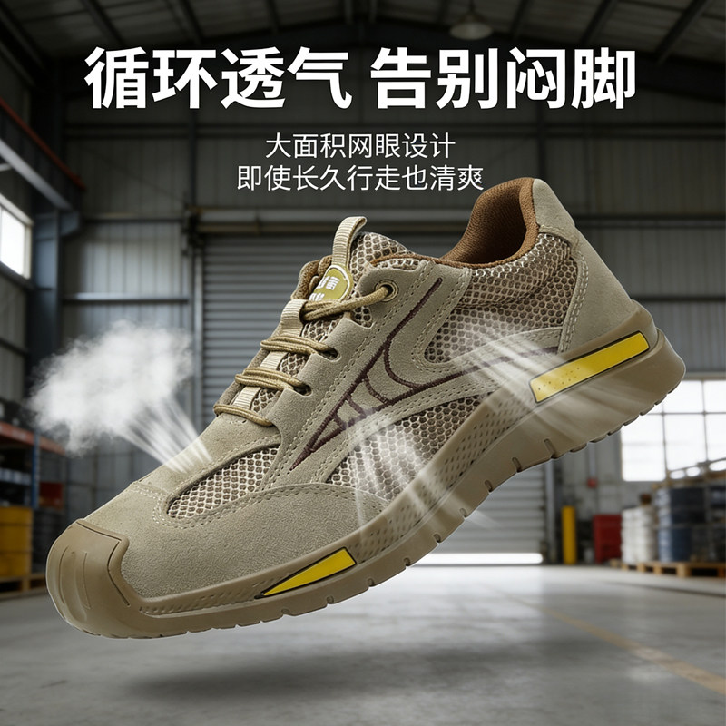 劳保鞋男款夏季透气钢包头防砸防刺穿轻便软底久站不累工地工作鞋