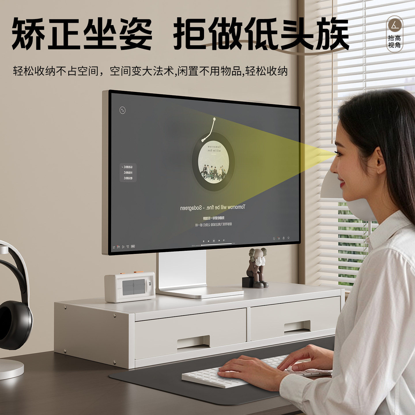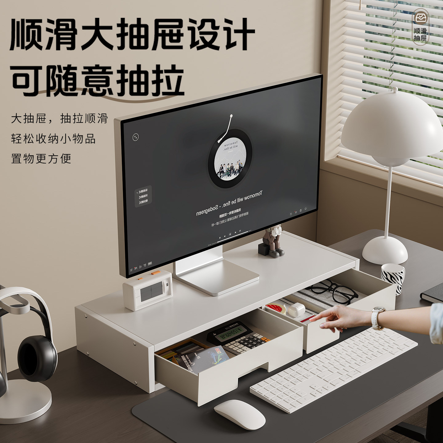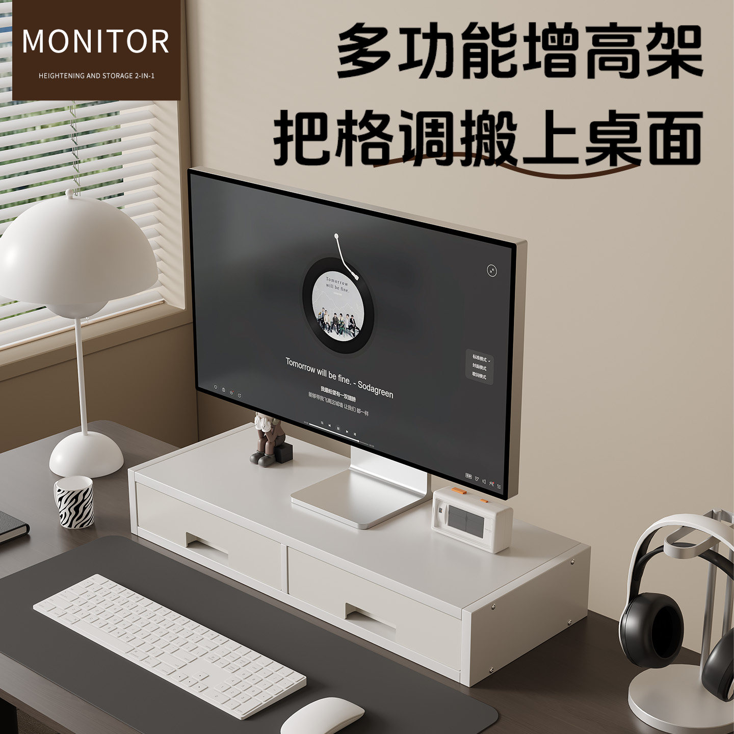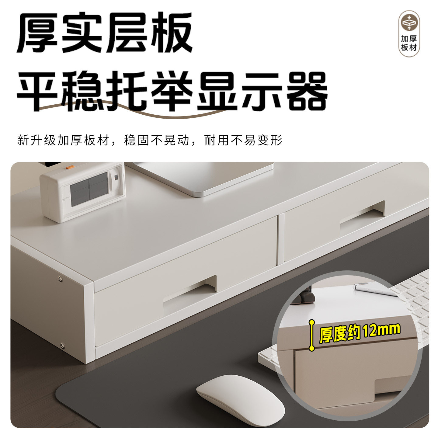 台式电脑增高架显示器屏抬高底座支架办公桌带抽屉置物架工位神器