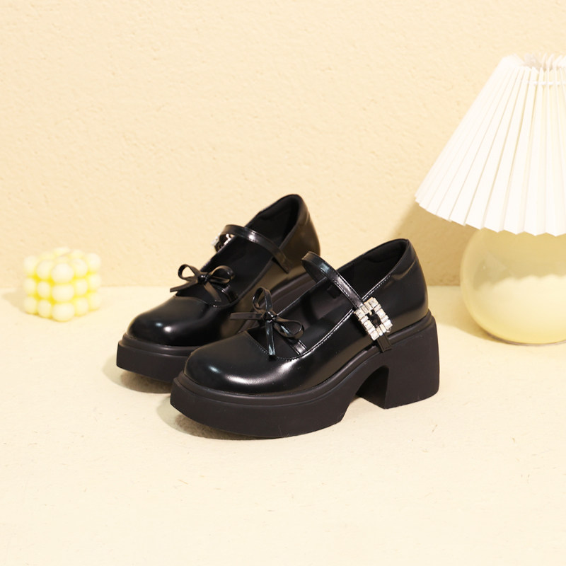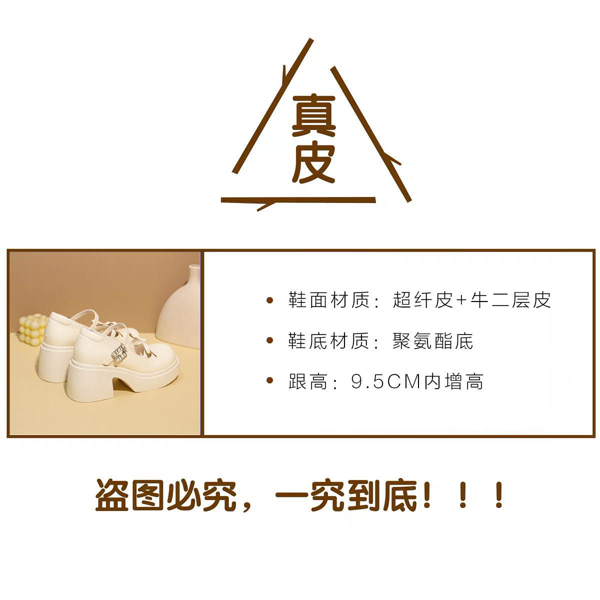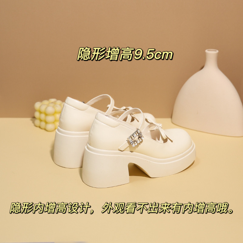 白色玛丽珍鞋高跟小皮鞋爆款厚底小白鞋增高轻便小个子内增高女鞋
