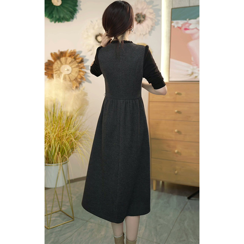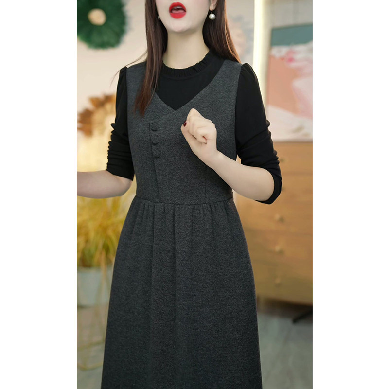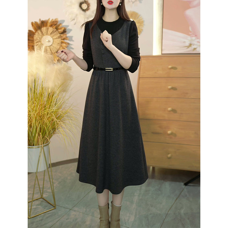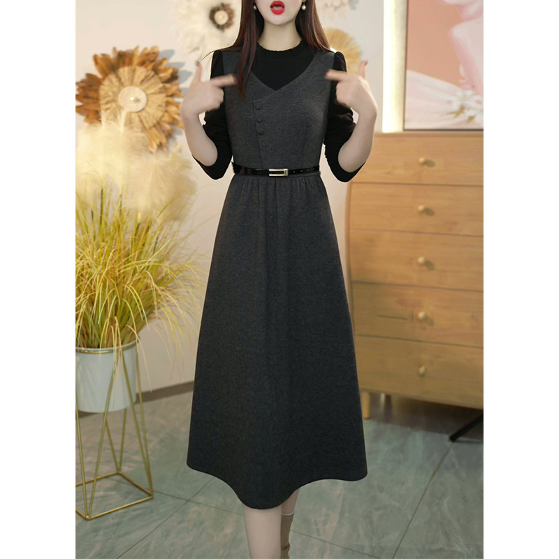 今年流行爆款长袖连衣裙女2026春秋新款气质配大衣妈妈假两件裙子