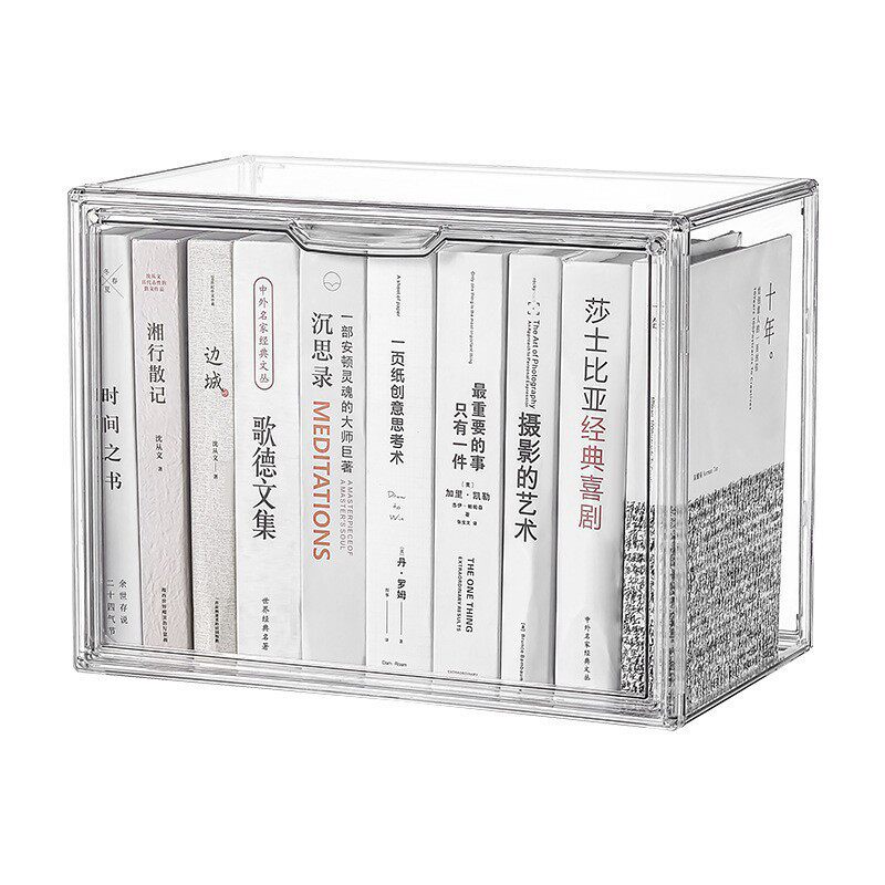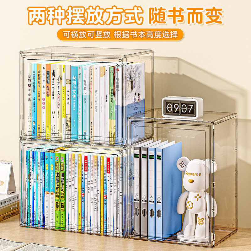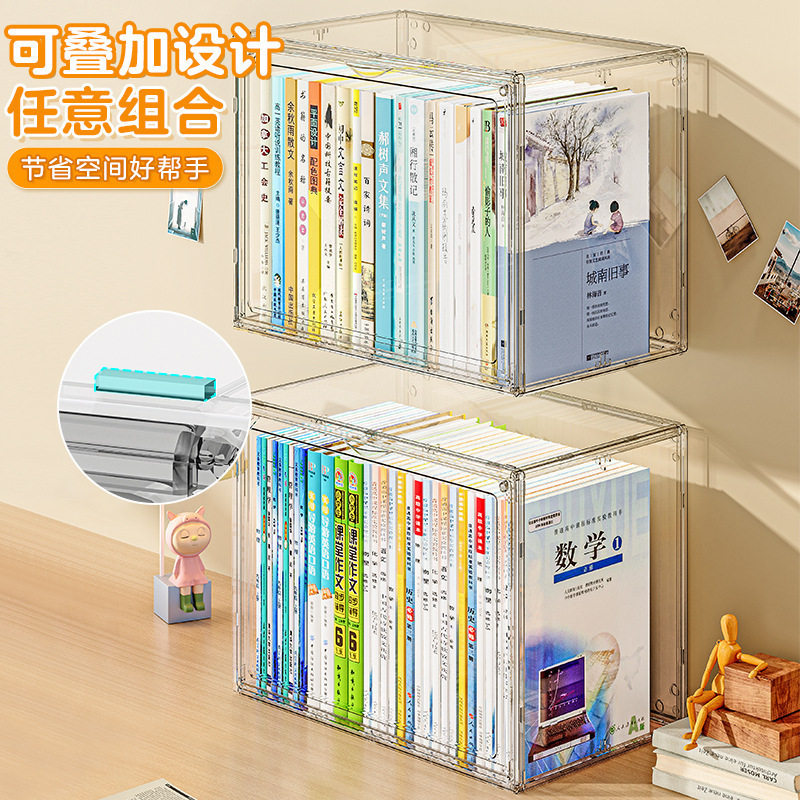 书本收纳盒学生书架桌面透明防尘书柜收纳箱书房书籍整理收纳