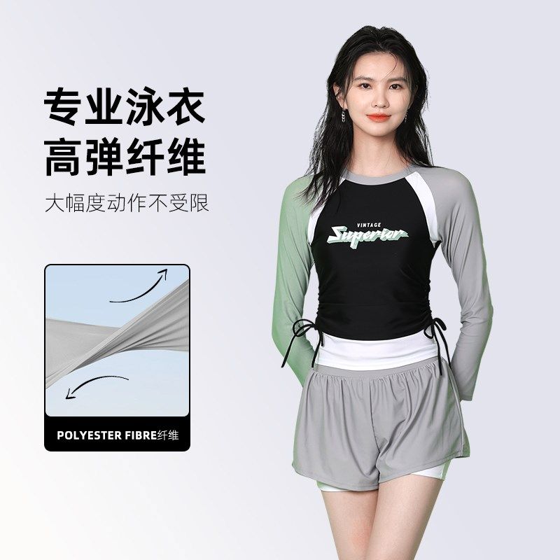分体泳衣b女初学者游泳馆新款竞速泳装显瘦遮肉保守平角游泳衣