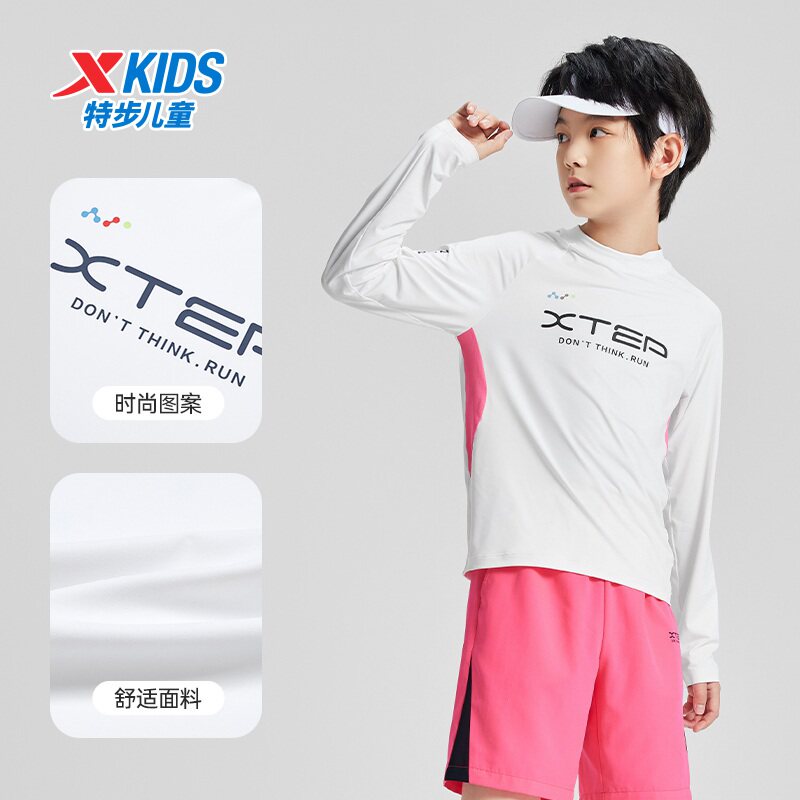 特步童装春季透气速干儿童运动上衣男中大童训练服套头长袖针织衫