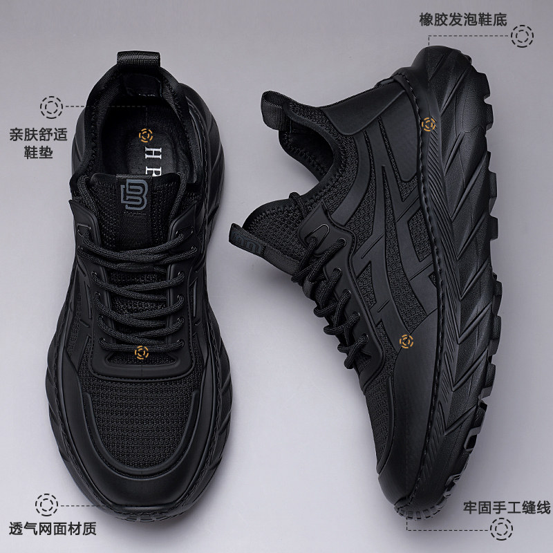 男鞋春季新款潮流休闲运动鞋男士增高软底透气防臭网面老爹鞋子男