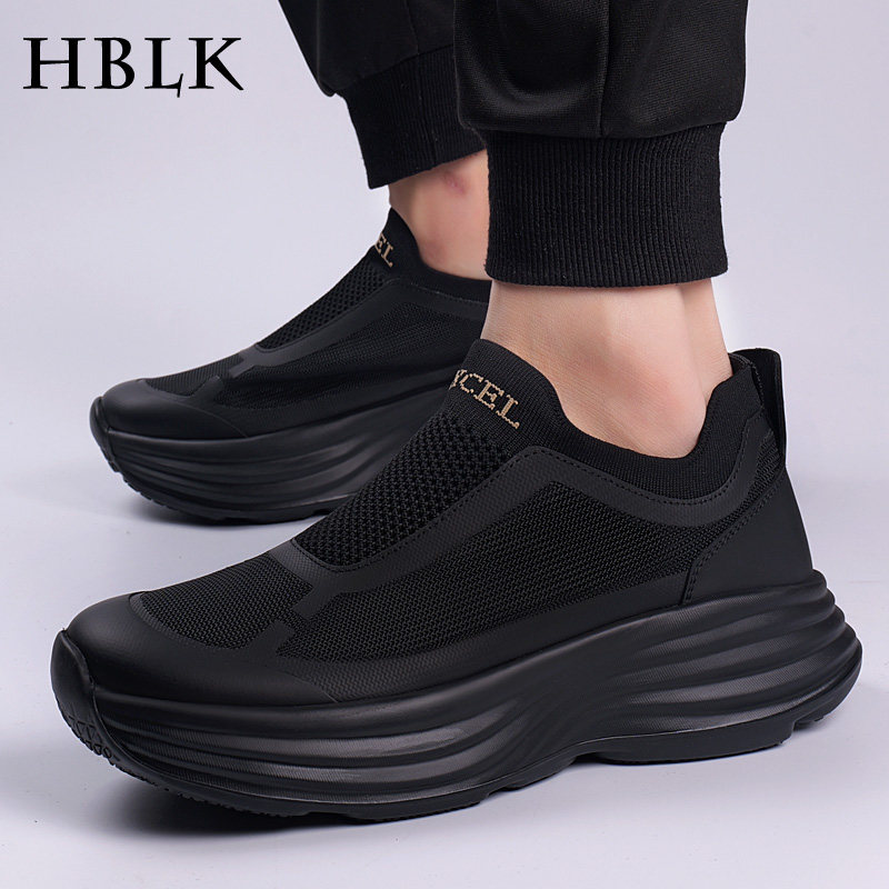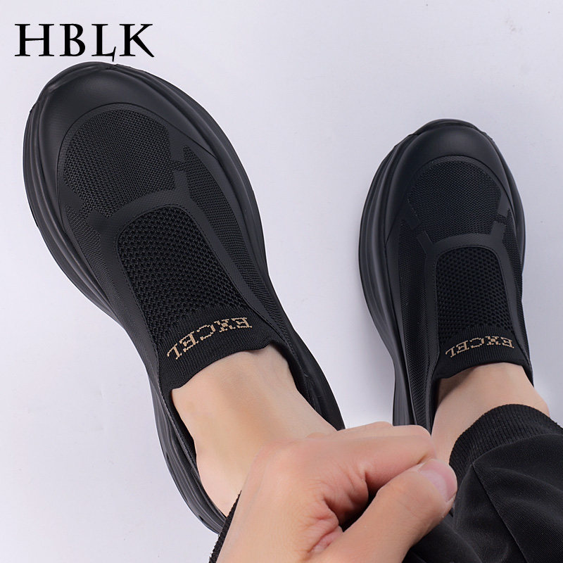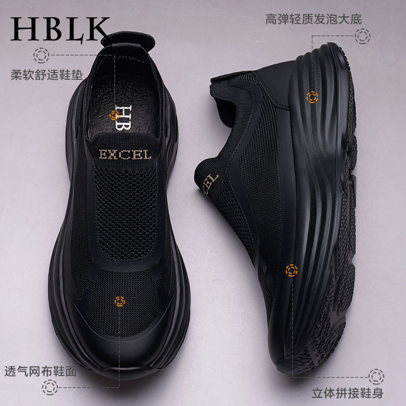 男鞋春季薄款网面透气防臭运动鞋子男士厚底增高一脚蹬飞织休闲鞋