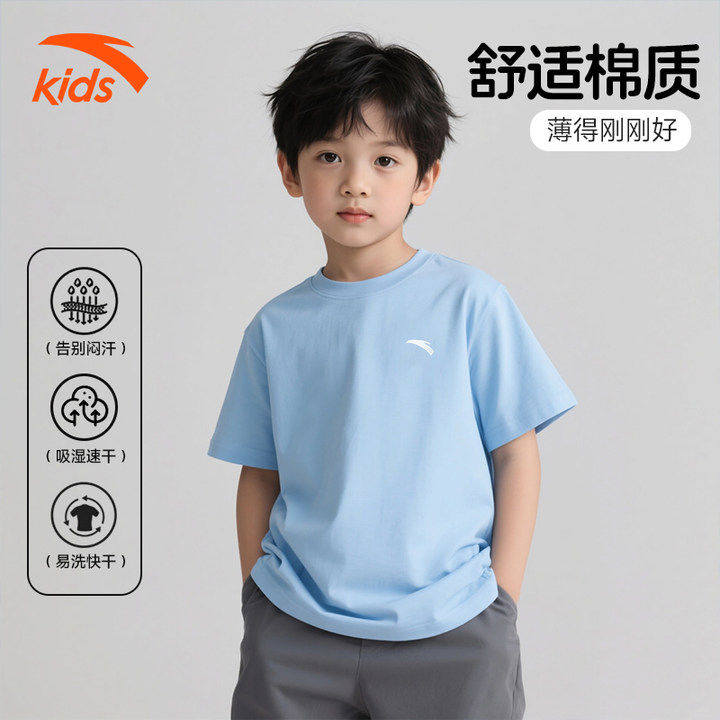 安踏儿童短袖T恤男童2026年春夏季新款运动清凉透气舒适上衣圆领