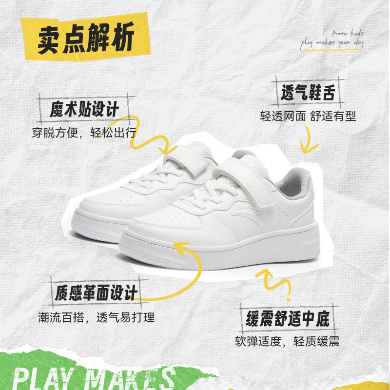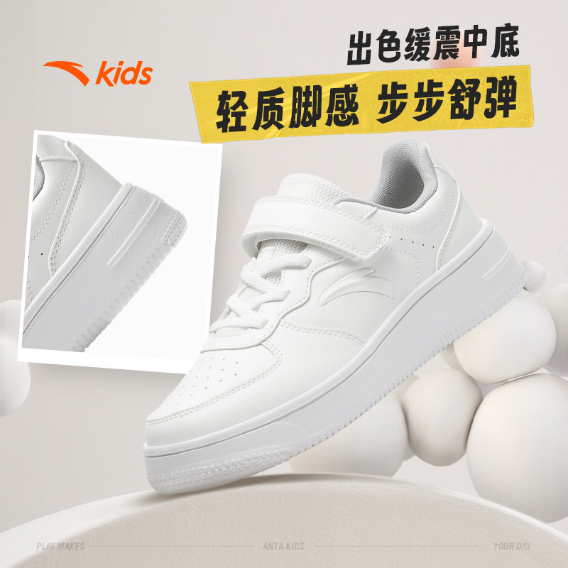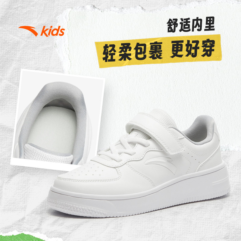 安踏儿童学生小白鞋低帮板鞋男女童夏季新款休闲运动鞋白色滑板鞋