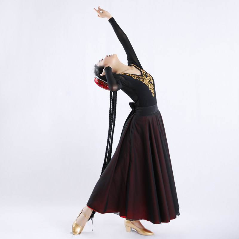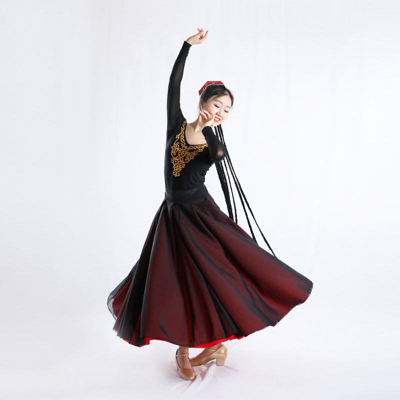 维族舞练功裙新疆舞蹈练习裙彝族藏族演出服装半身裙成人大摆裙女