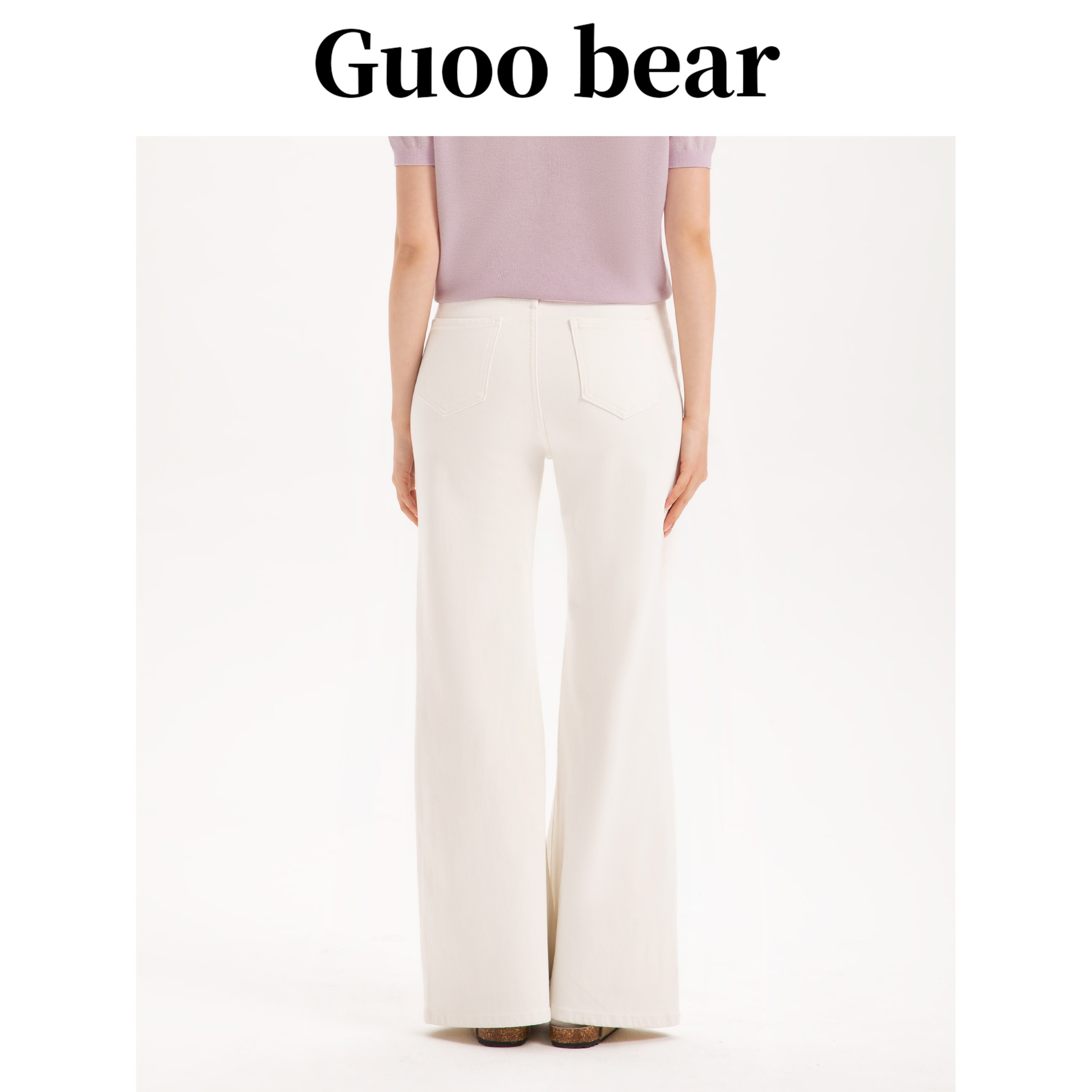 GUOOBEAR古家小熊2026夏季新款微喇白色休闲高腰显瘦直筒牛仔裤女