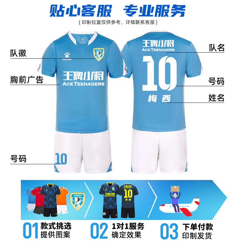 KELME卡尔美儿童足球服套装男校队训练球衣女学生比赛服装可印字