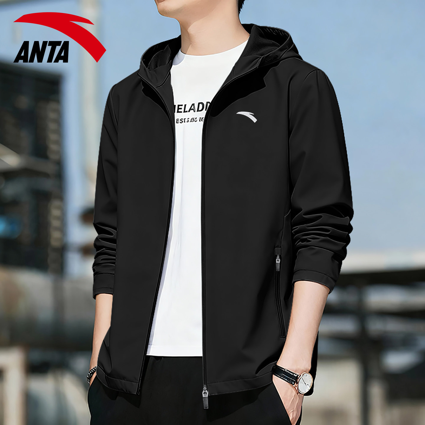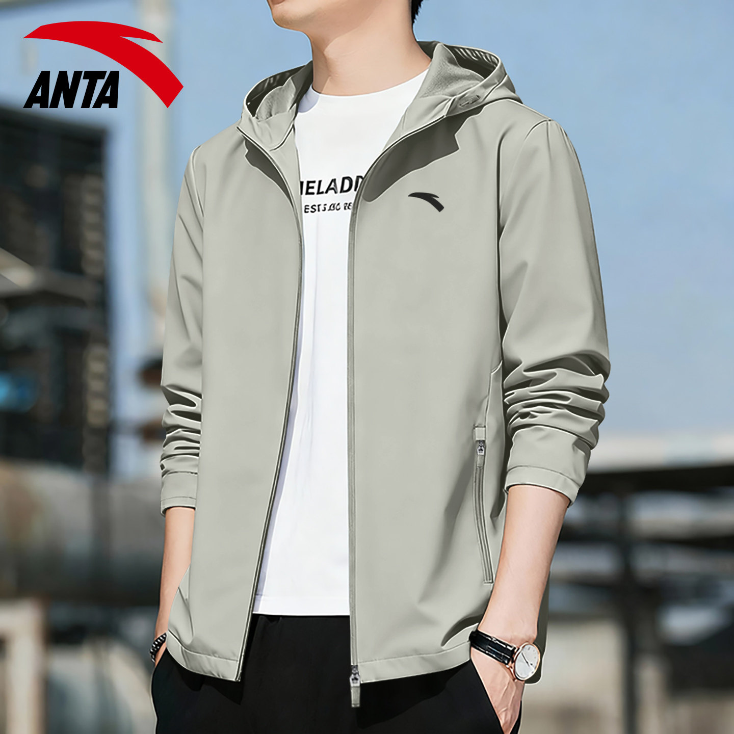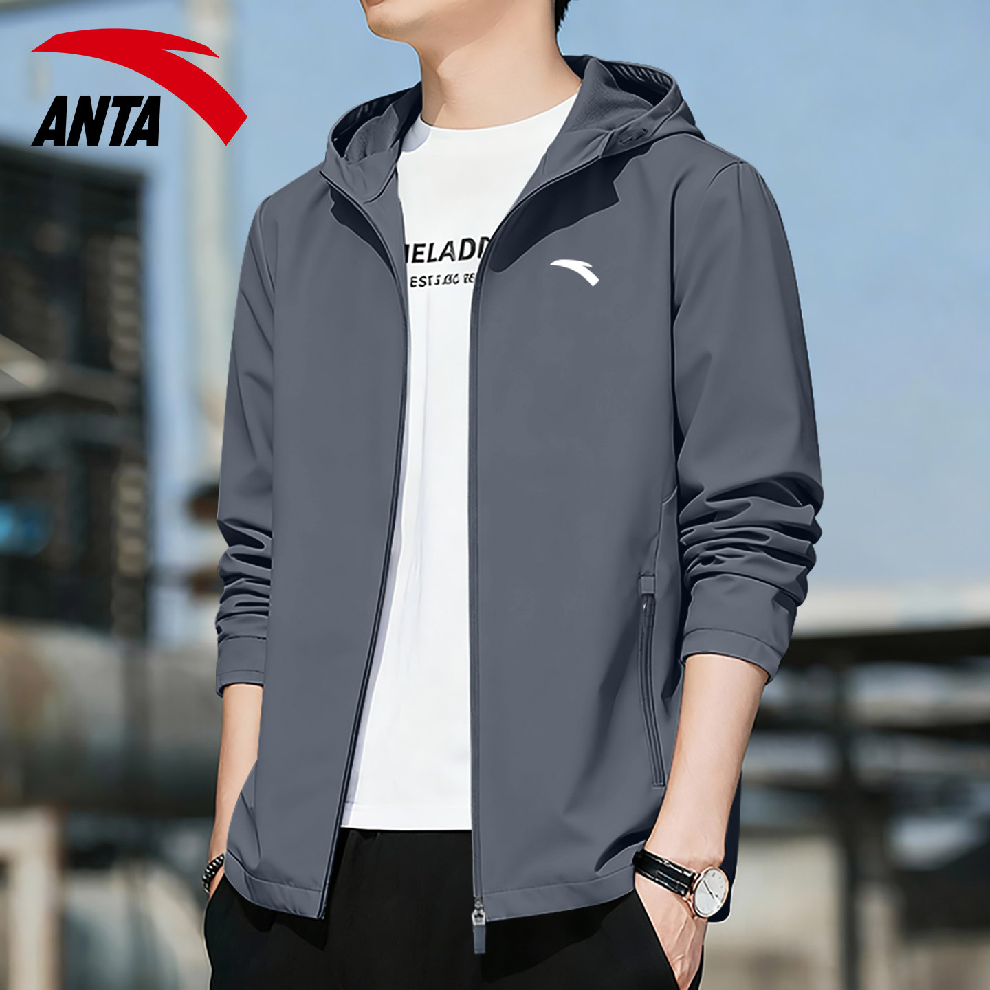 安踏男款外套2026春季新款青少年薄款连帽风衣休闲蓝色夹克开衫男