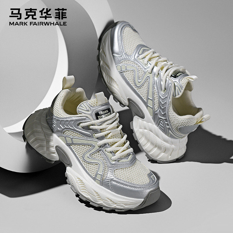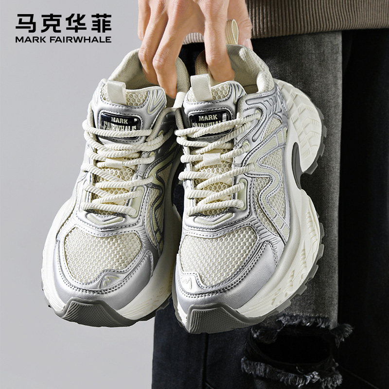 马克华菲男鞋厚底老爹鞋男2026冬季新款男士银色百搭运动休闲鞋子