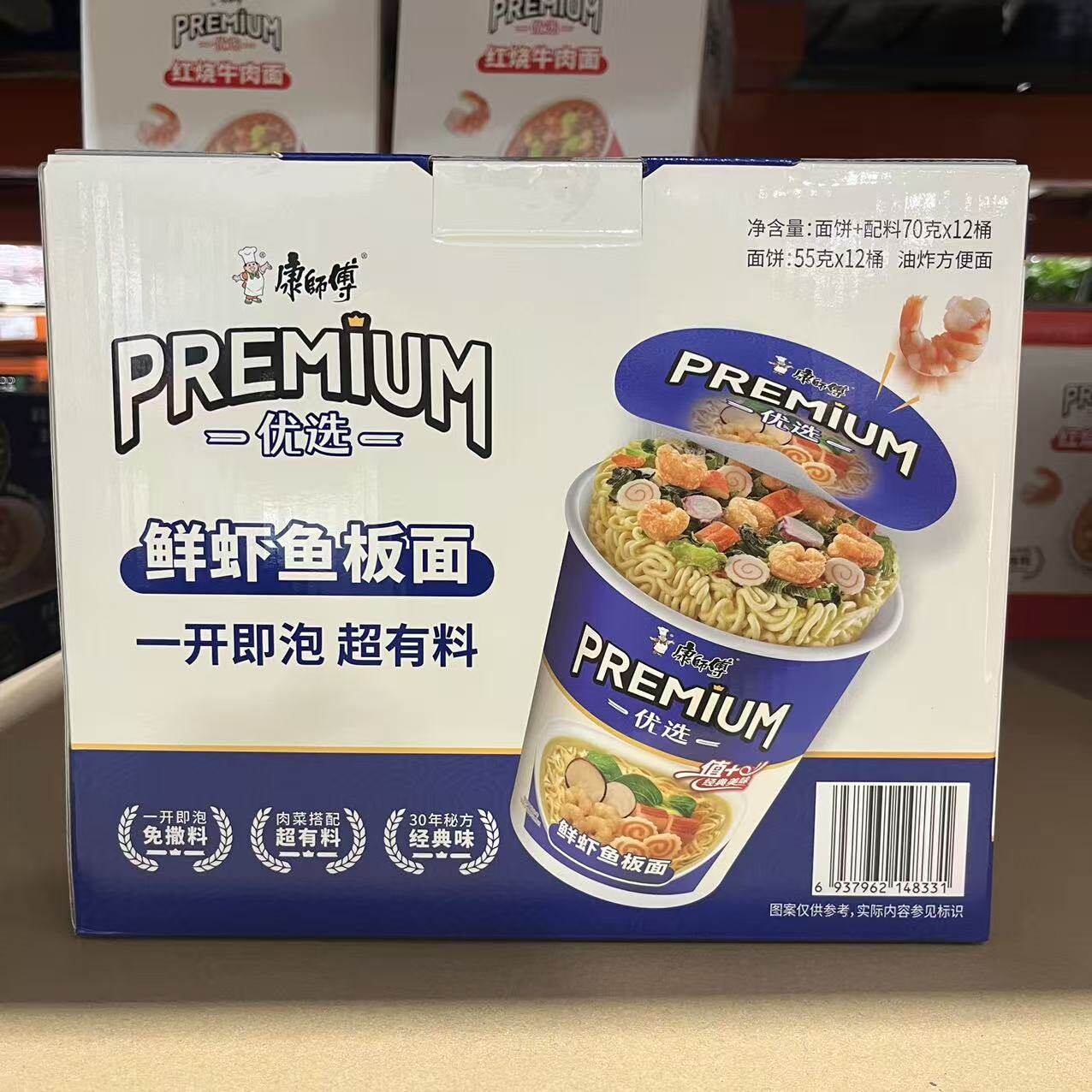 开市客代购 康师傅PREMIUM优选鲜虾鱼板面经典红烧牛肉面70g*12桶