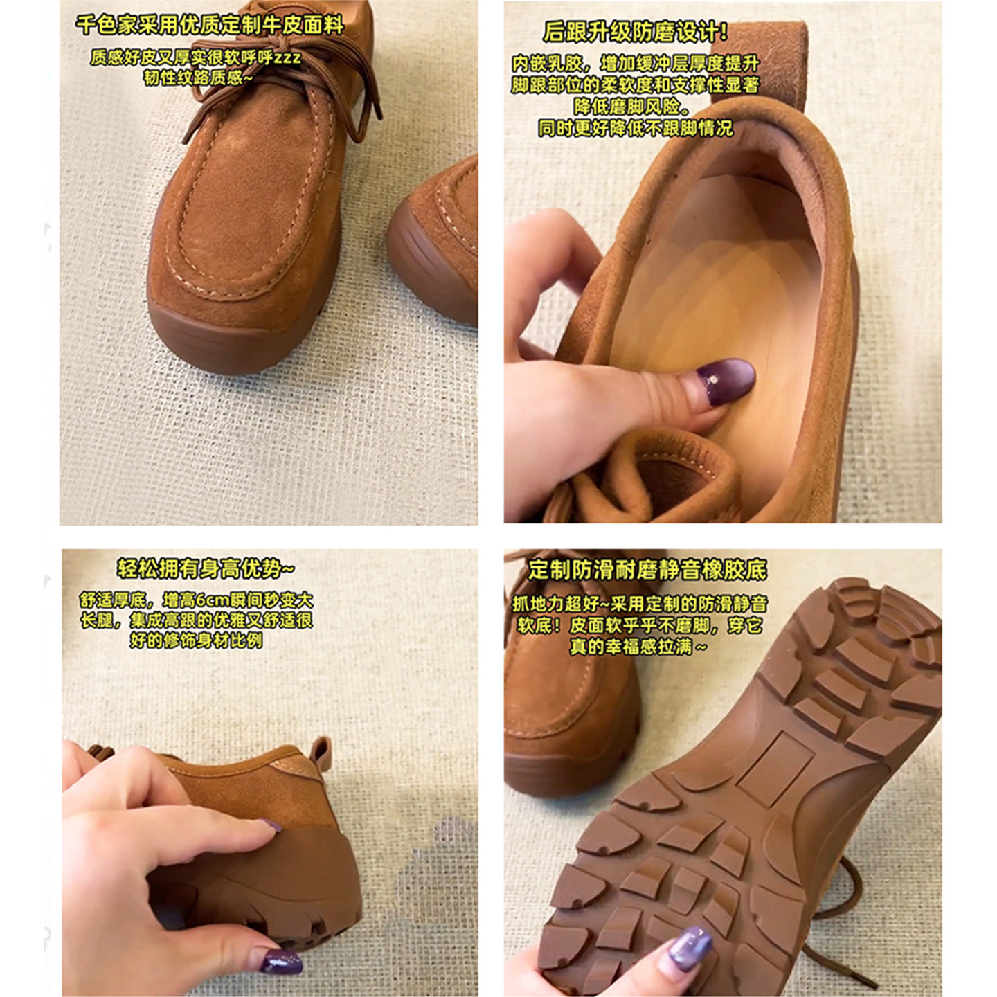 牛皮版~英伦风厚底乐福鞋女2025新款圆头系带休闲鞋增高复古单鞋