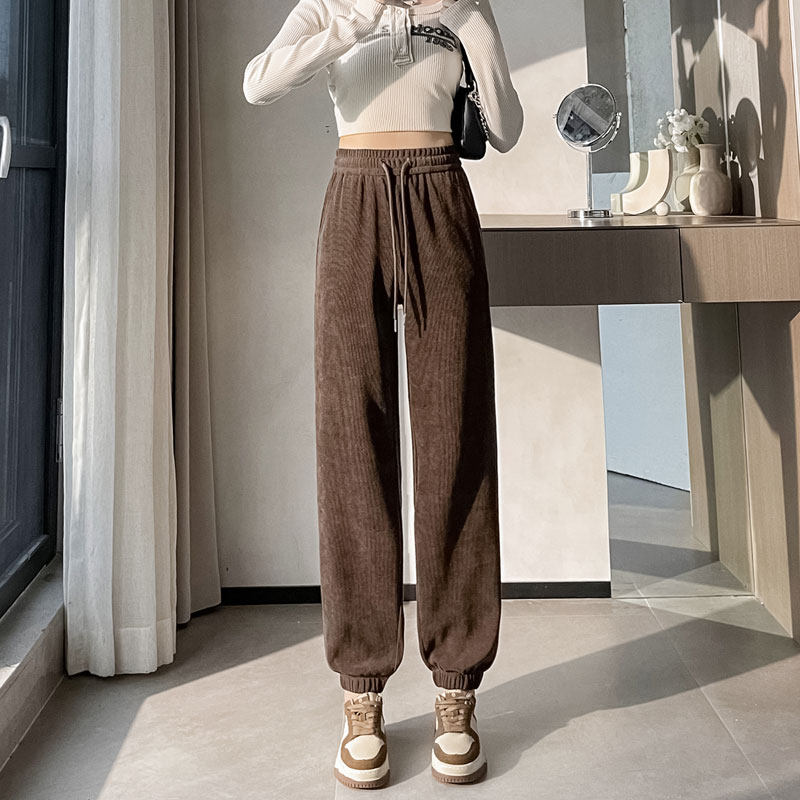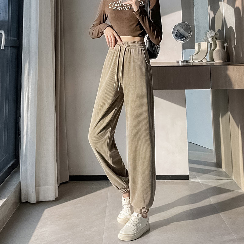 青少年高中初中学生女孩春秋裤子加长版高个子宽松束脚运动休闲裤