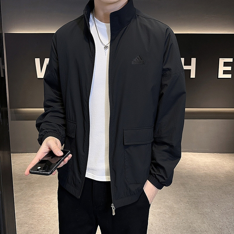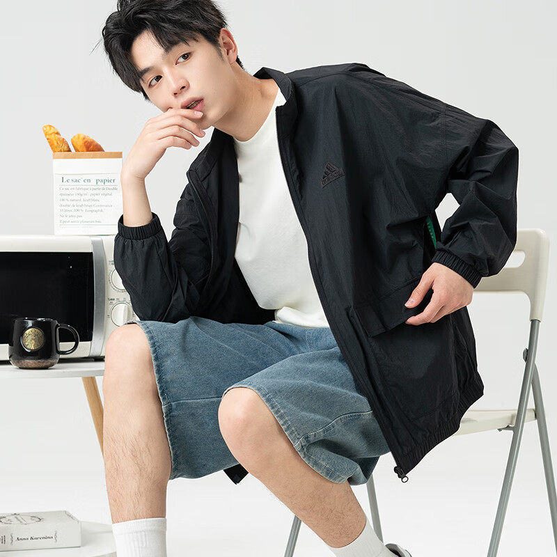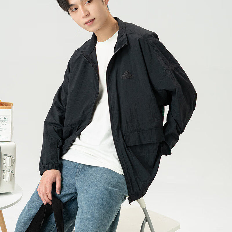 阿迪达斯外套男春季新款薄款梭织透气防风衣美式休闲篮球立领夹克