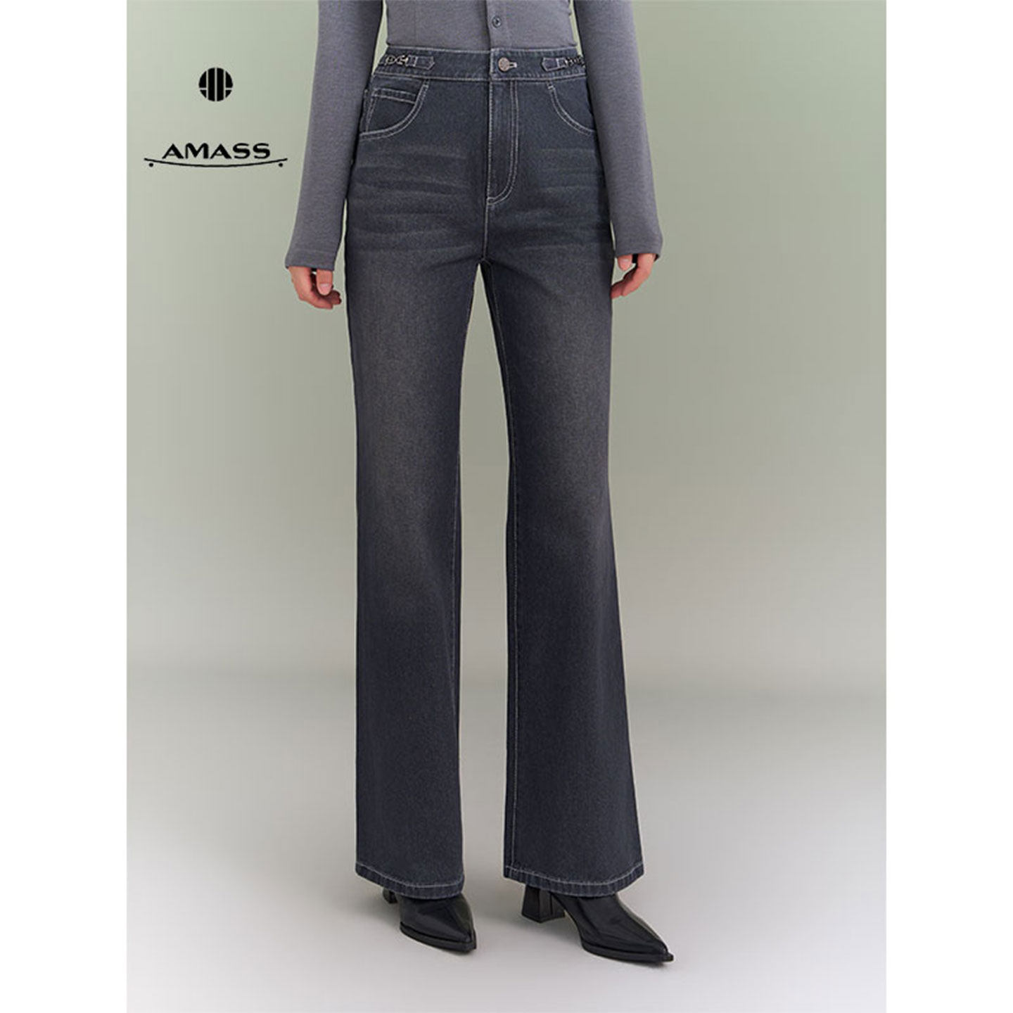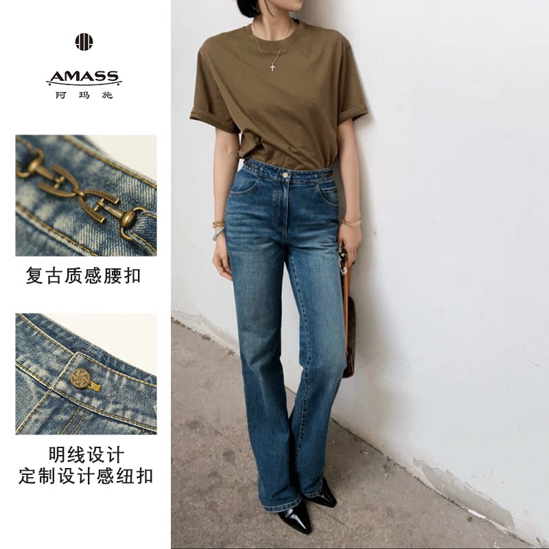 AMASS阿玛施2026新款直筒微窄牛仔裤子女款秋洋气复古砂洗510011