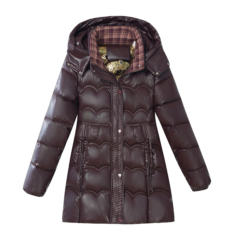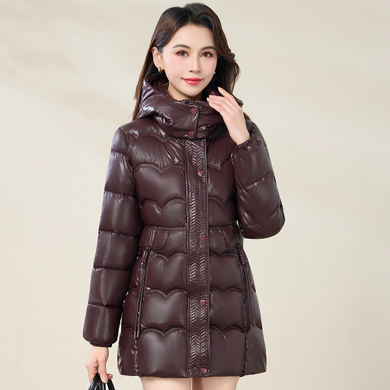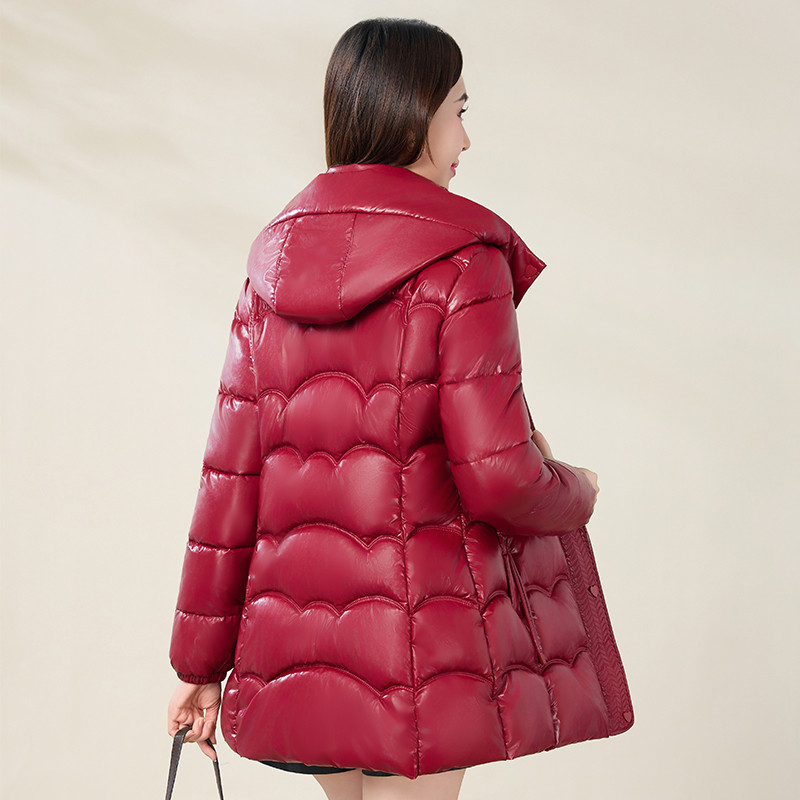 中年女士时尚亮面免洗羽绒棉服2025冬季新款妈妈中长款加厚棉衣