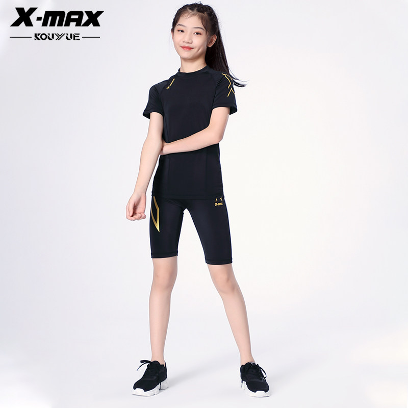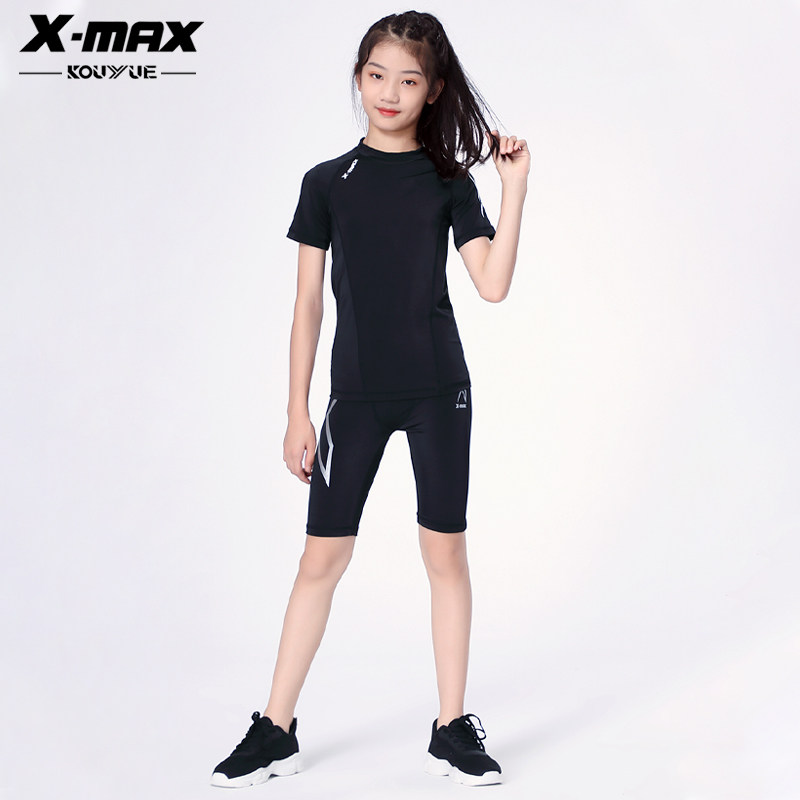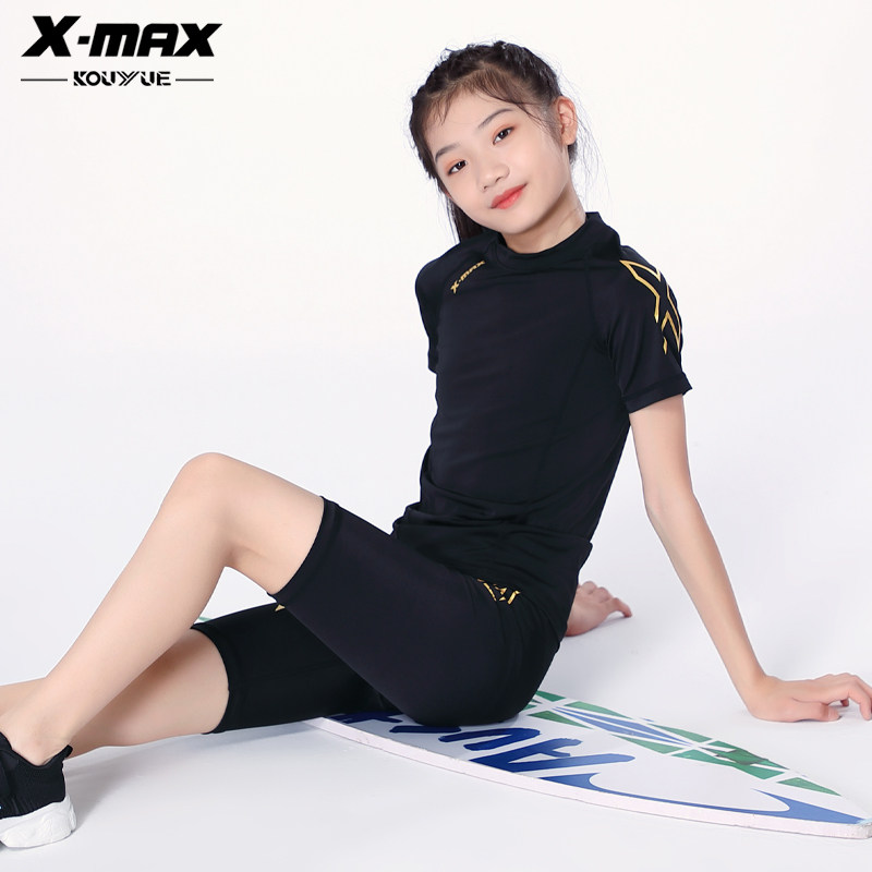 2X-max儿童运动速干泳裤紧身裤女童篮球跑步训练打底五分裤弹力裤
