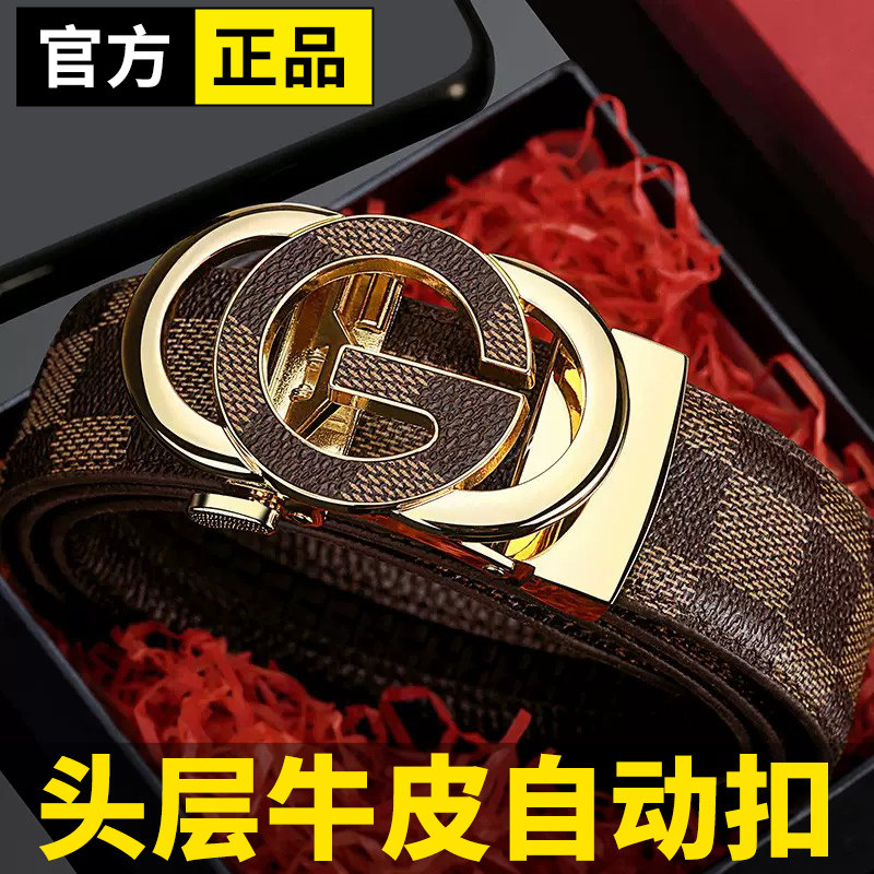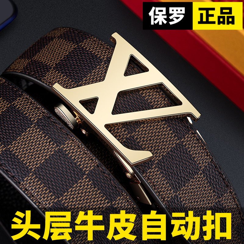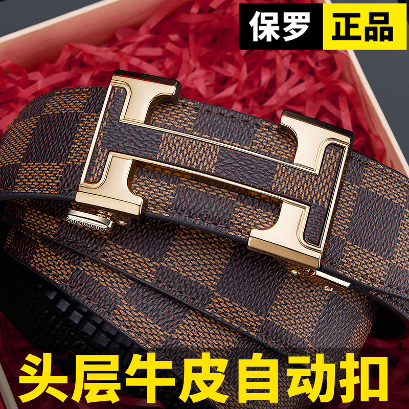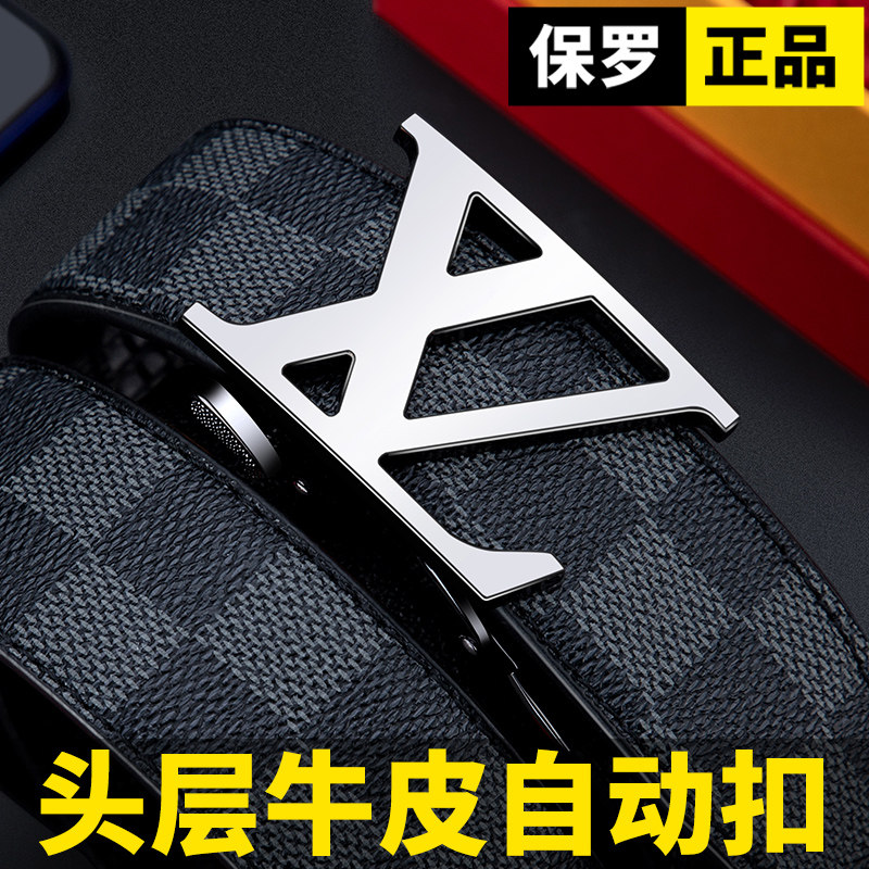 保罗高档男士腰带头层牛皮自动扣皮带真牛皮礼盒装中年轻人裤带潮