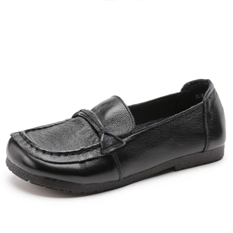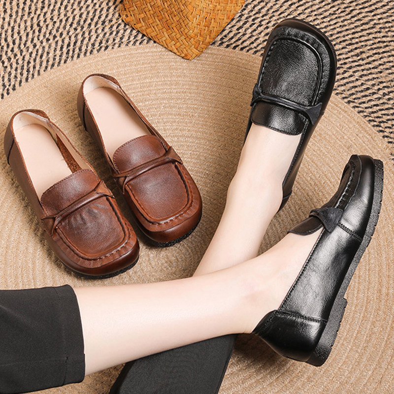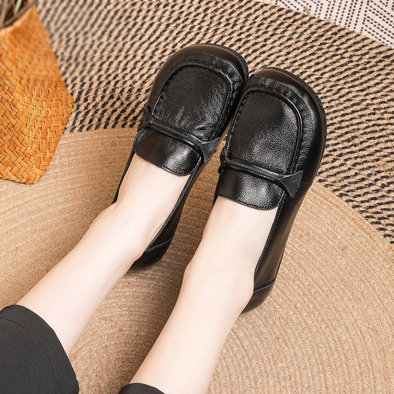 头层牛皮牛筋软底豆豆鞋轻便女士皮鞋真皮宽脚胖脚妈妈鞋平底女鞋